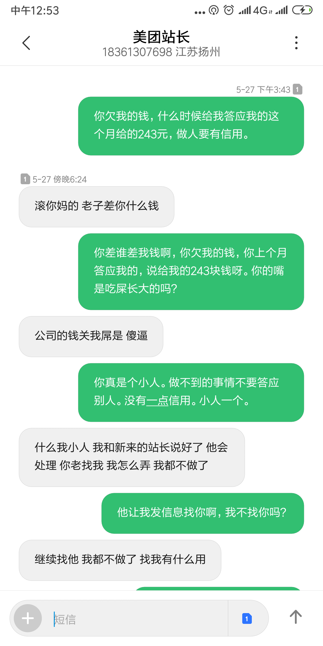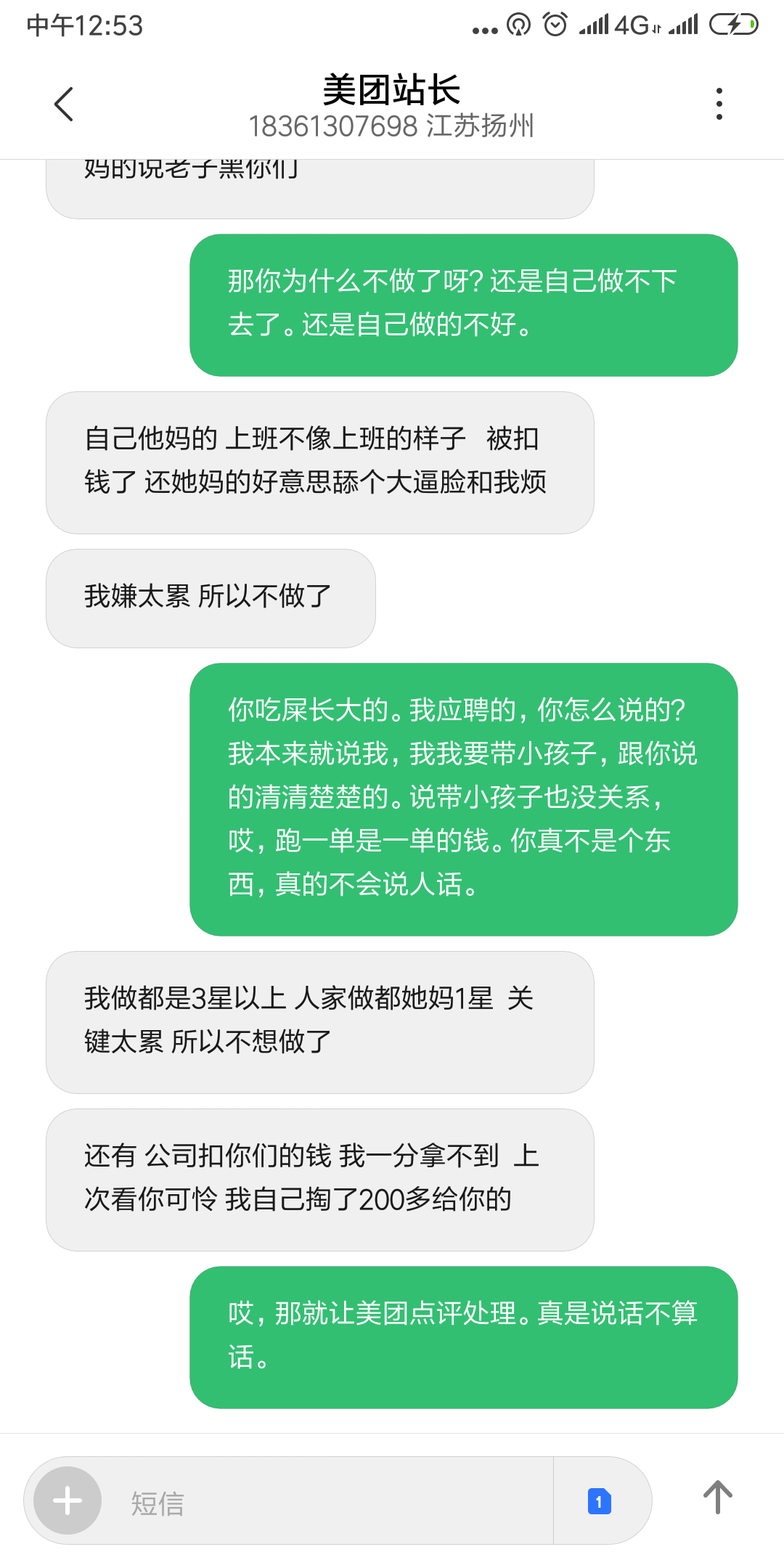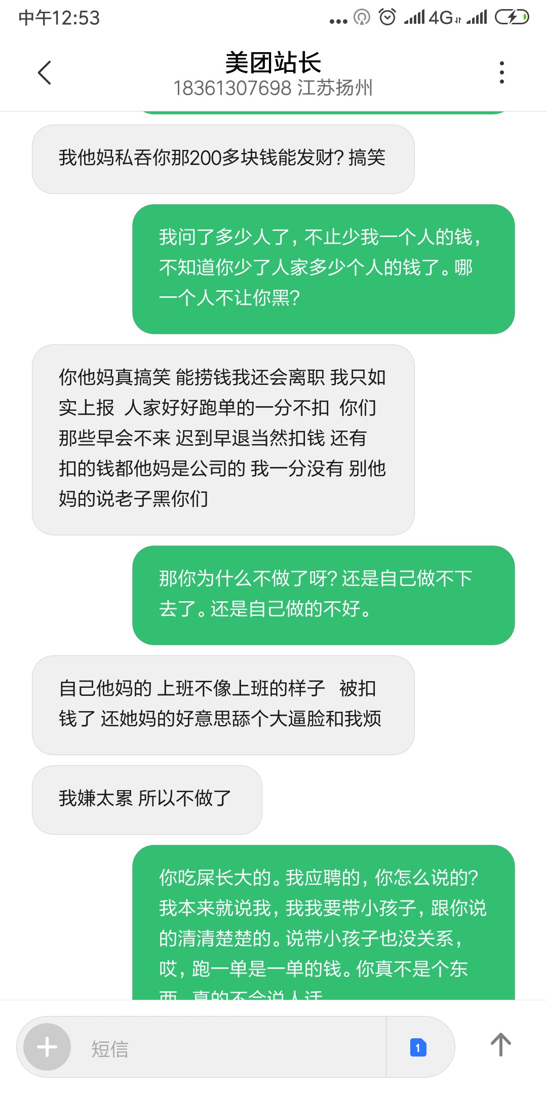 东区美团专送,拖欠员工工资不给还骂人。