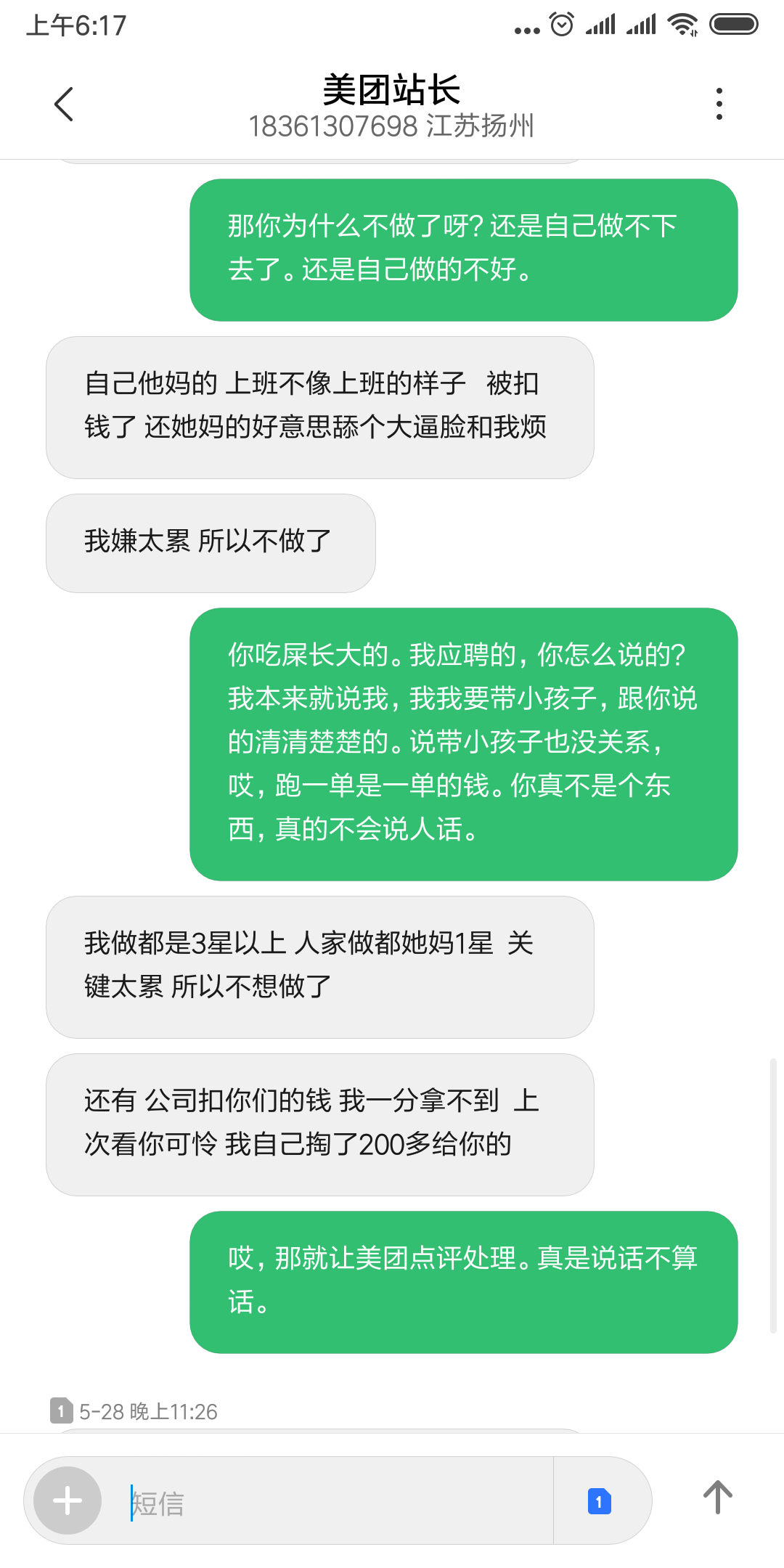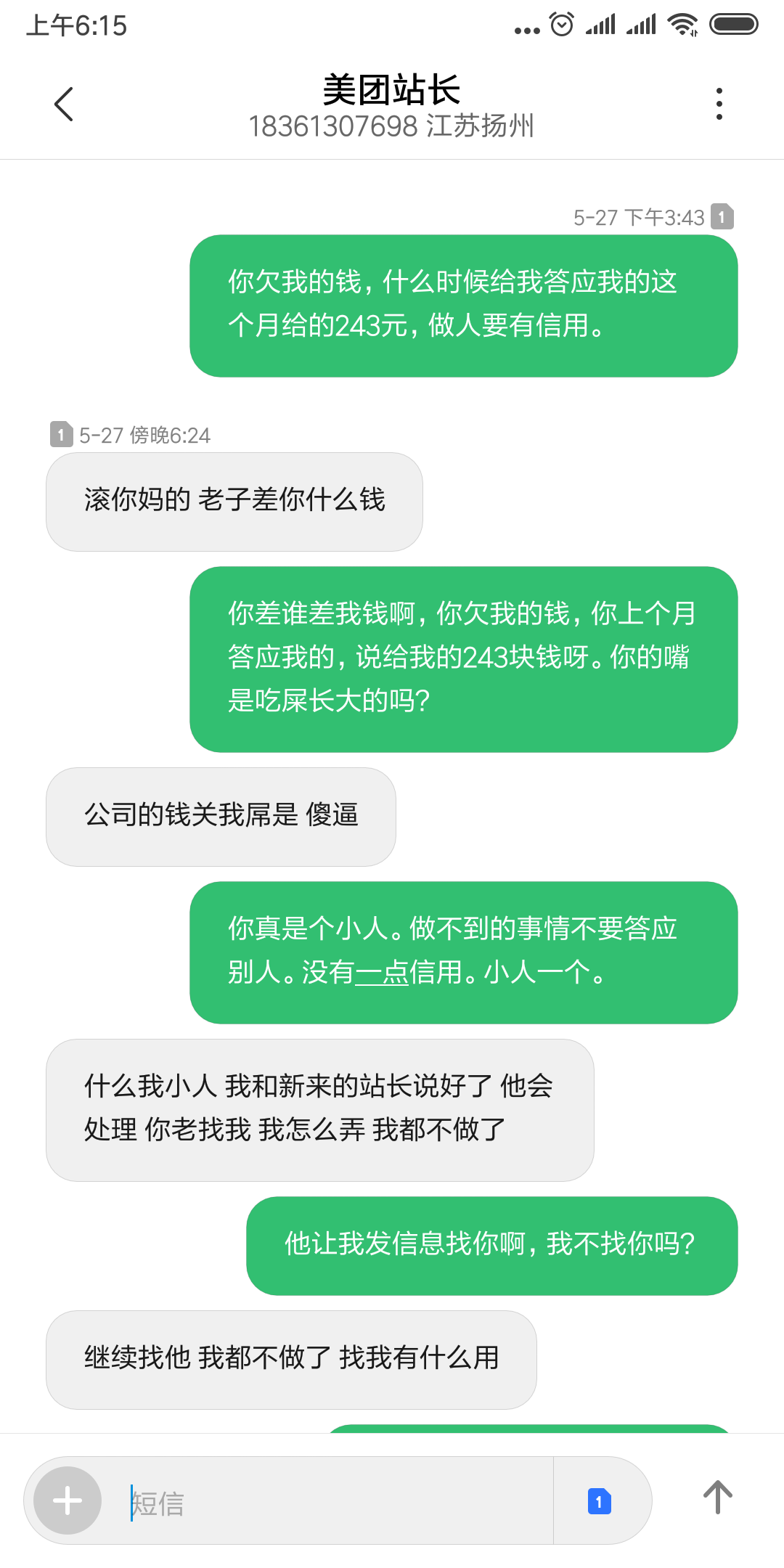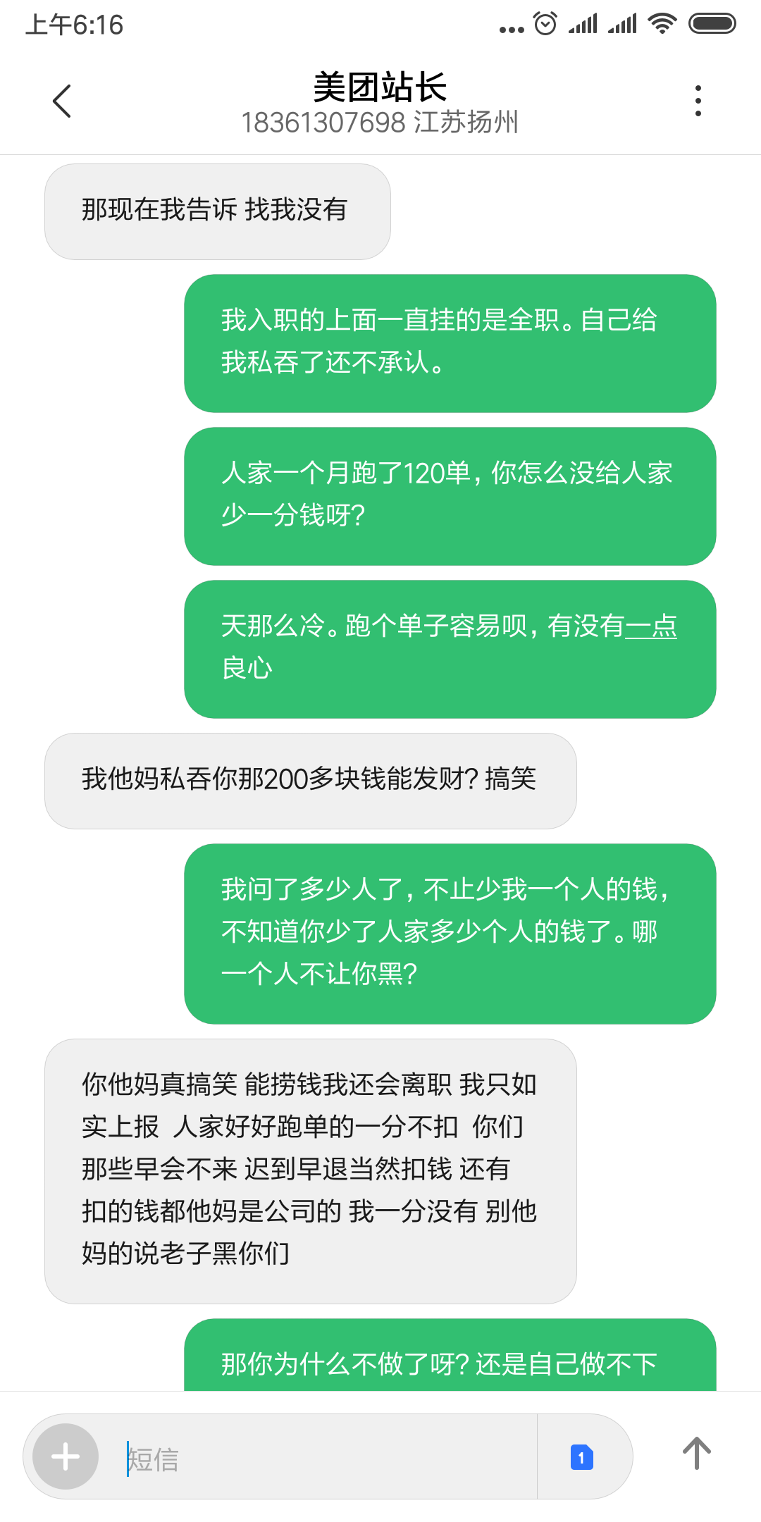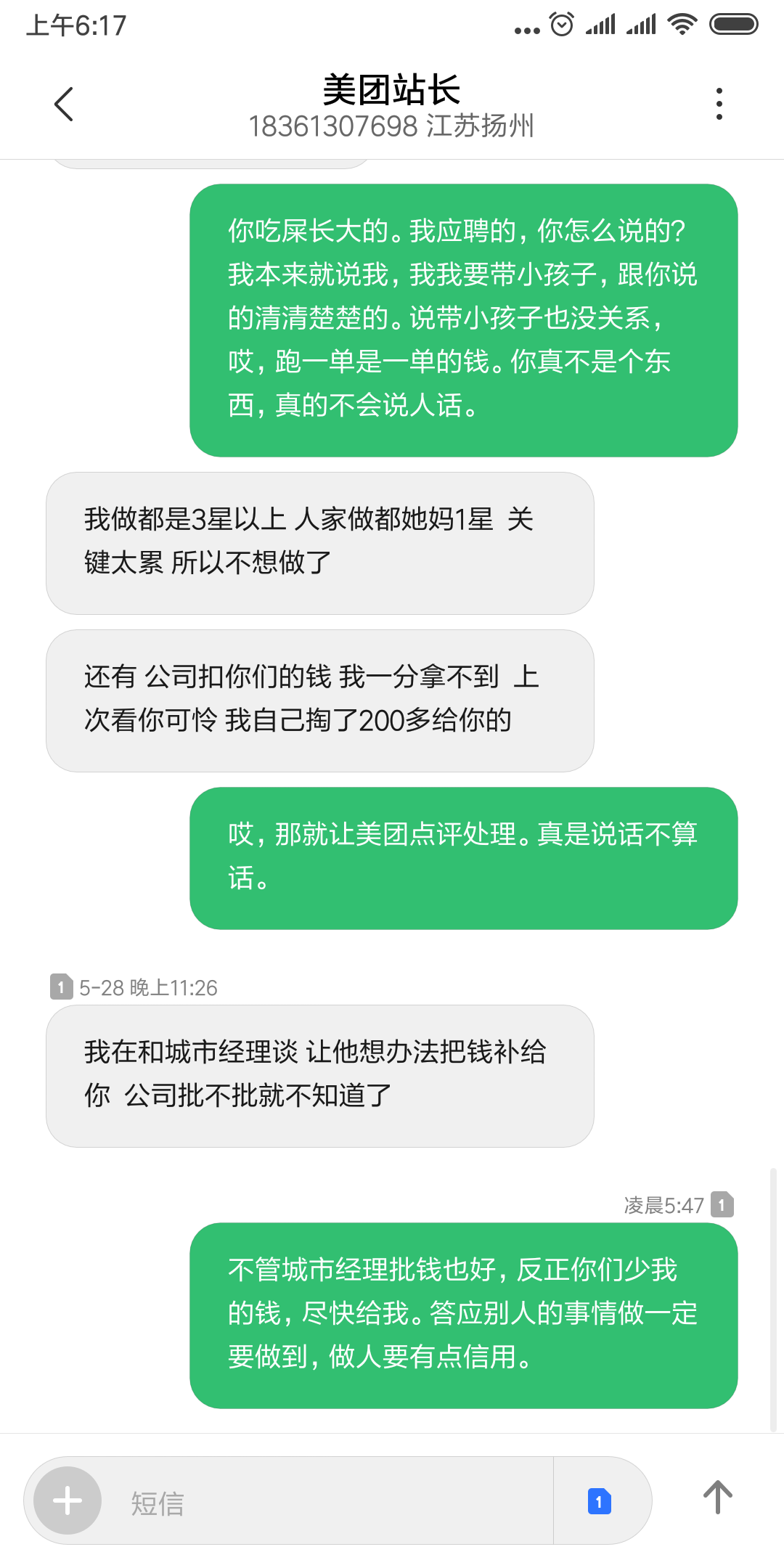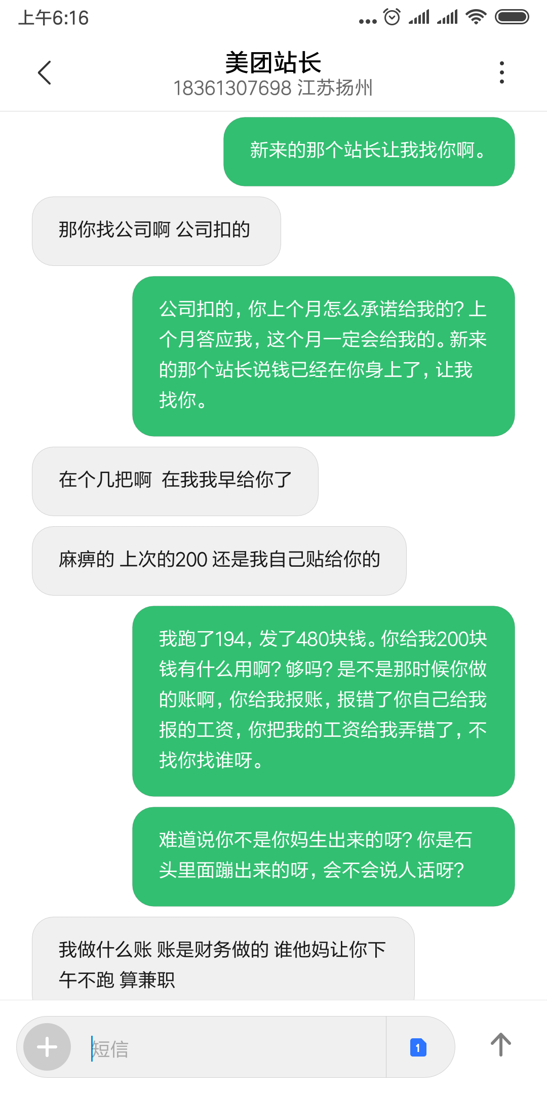 东区美团专送站长没有素质,每说一句话都带脏字,东区美团专送拖欠员工工资不给,还骂人。东区美团专送拖欠员工工资不给,还骂人。东区美团专送拖欠员工工资不给,还骂人。东区美团专送拖欠员工工资不给,还骂人。
