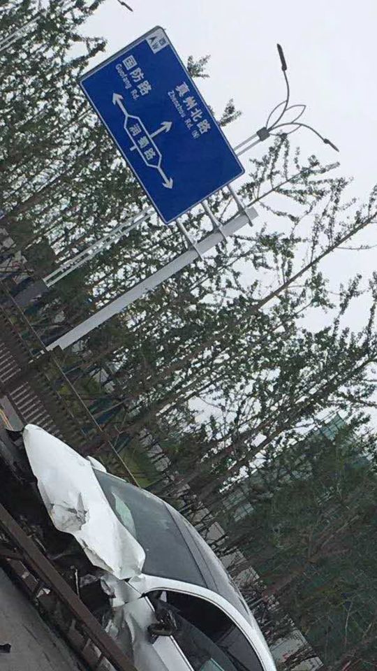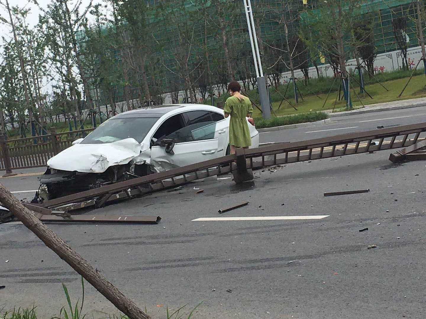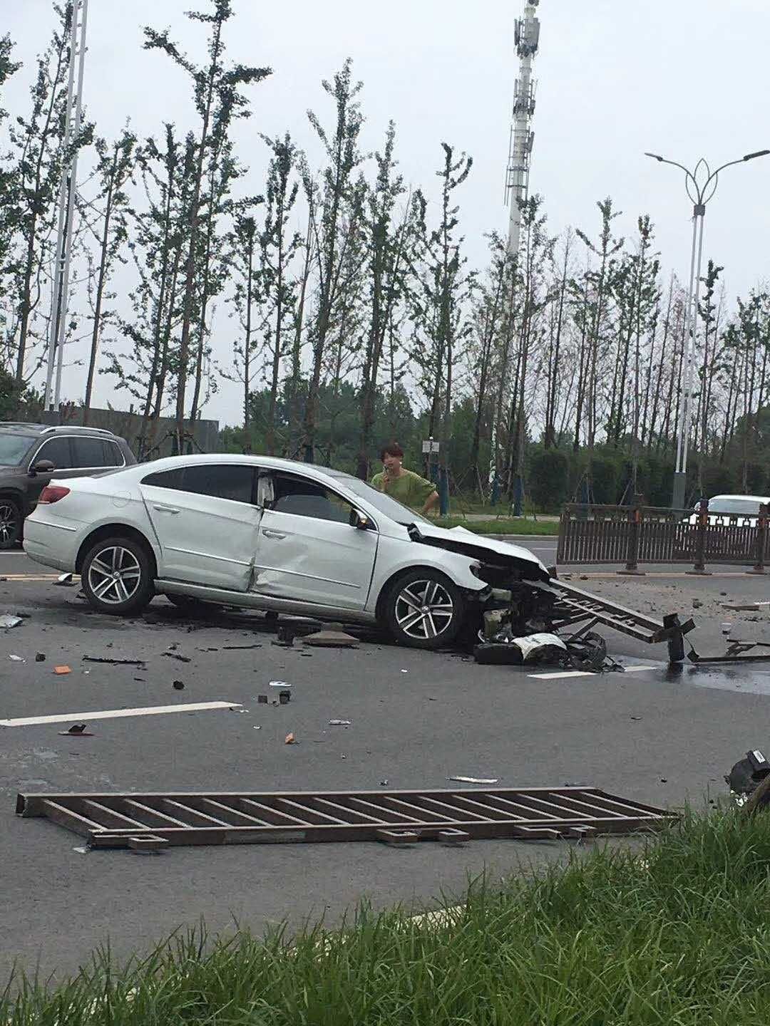 今天下午二点左右,在扬州邗江区国防路与真州北路交汇润蜀路口附近,一轿车方向突然失控后,撞坏了路上的金属栅栏,汽车也受损不轻,所幸没有人员受伤,提醒一下,出行注意检查车况,保持良好状态!
