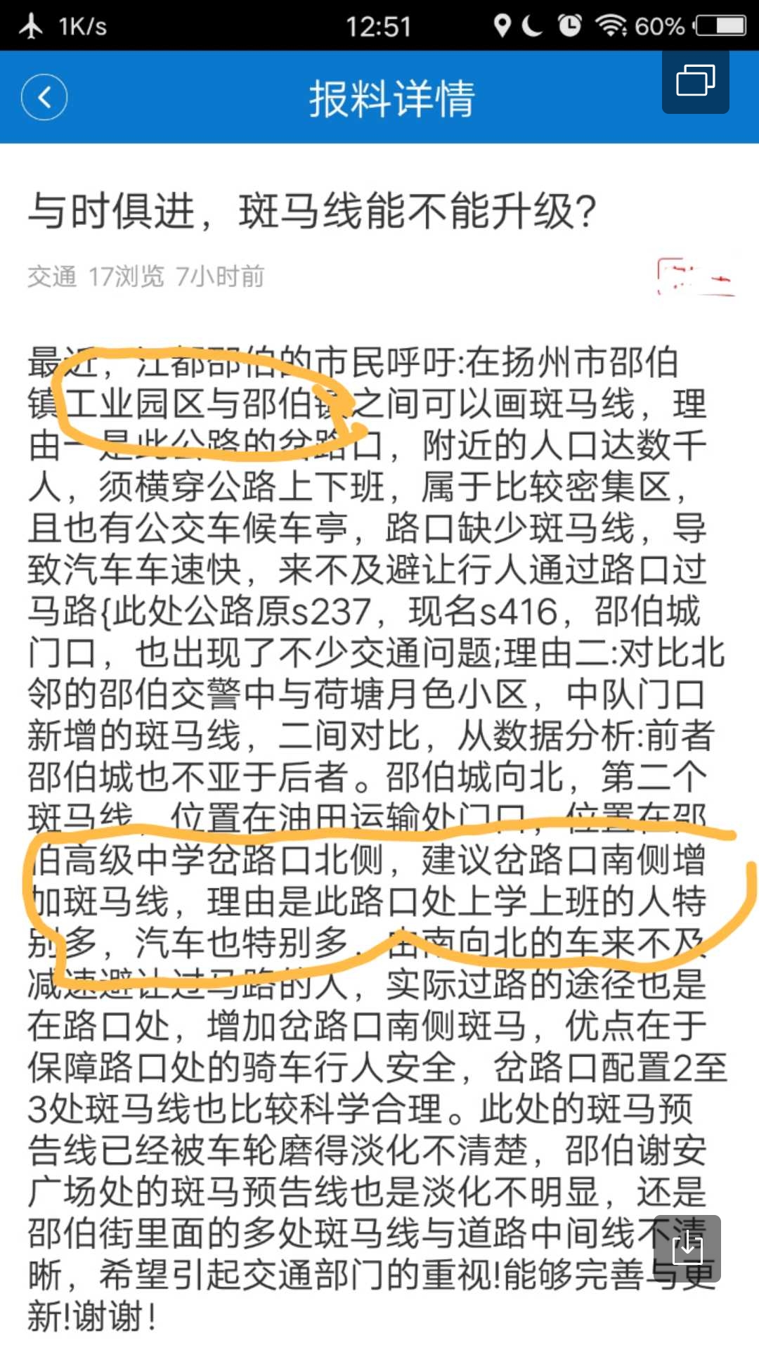 近期,江都区S416发生了多起交通事故(1,2,3,4,5),感觉是缺少斑马线,与实际不匹配,