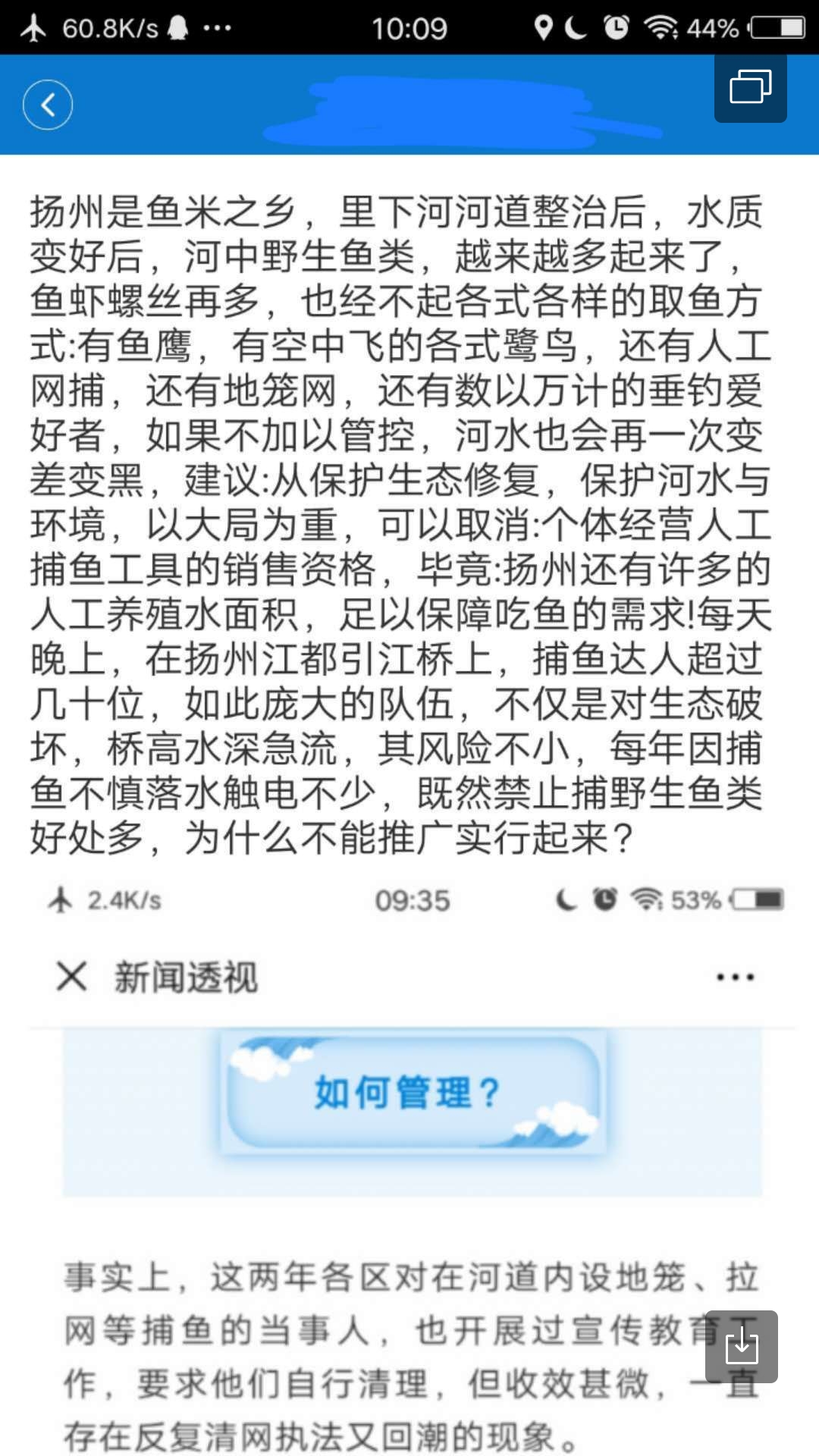 扬州460多万人口,其中垂钓爱好者数万人,各地兴建农家乐园可供爱好者有偿钓鱼,但是,许多人依然选择在运河与里下河垂钓,这些野生鱼类,也是保护类鹭鸟的食物链,为什么:法律保护鸟,却没有保护鱼?