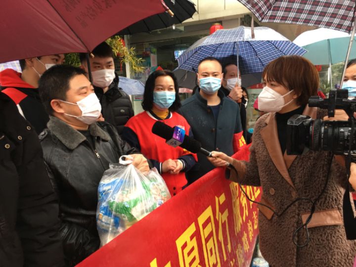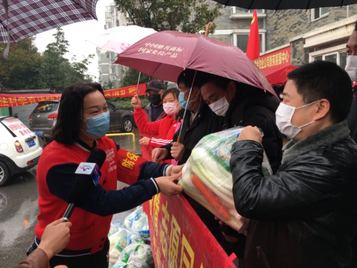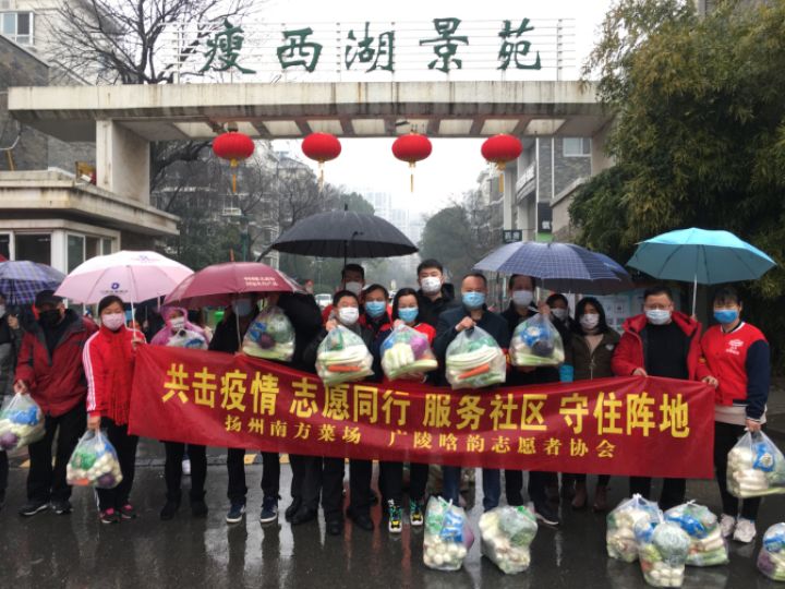 2月25日,广陵区晗韵志愿者协会、滨湖义工携手扬州市蔬菜产业协会、南方菜场配送中心为滨湖社区抗疫一线卡口守门人送上健康蔬菜家庭装。由于滨湖社区抗疫卡口守门人一个多月以来24小时坚守阵地、舍小家为大家、难有时间上农贸市场购买蔬菜。与滨湖社区一起并肩战疫者晗韵志愿协会负责人看到他们平时带的饭菜,特别有心地与南方菜场进行了对接,该菜场陆和林总经理表示全力支持。今天他们携手冒雨来到瘦西湖景苑在社区金书记、社区江主任带领下来到抗疫卡口给在一线坚守的物管员、网格员、社区工作人员送上晗韵志愿、南方菜场为他们精心配送的暖心健康蔬菜。内有:白玉菇、鸡味菇、青椒、娃娃菜、粘玉米等10个品种,这让守门人十分感激。社区守门人纷纷表示:要克服困难、继续作战、坚守阵地、决心一定要打赢防疫战。 蔬菜协会陆和林副会长表示要和滨湖社区、志愿者团队深度合作、融合资源、助力社区抗疫、共守住扬州阵地。扬州广电总台电视记者冒雨进行了跟踪采访报道,社区为感谢向抗疫一线记者赠送了口罩,记者深表谢意时说道:这是我们第一次收到这样特殊的礼物,表示要深入社区抗疫阵地采访、报道凡人善举、为抗疫加油!