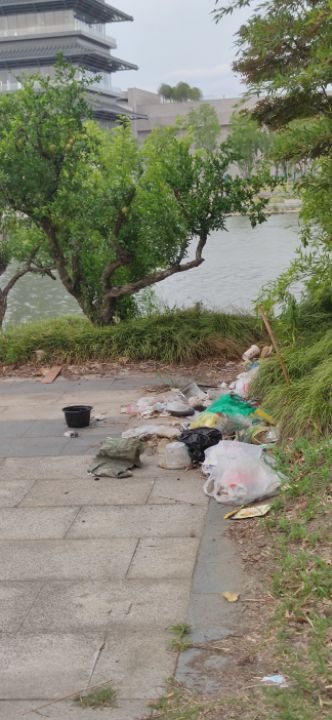 三湾公园内的塔影广场脏乱差严重垃圾成堆无人打扫,严重影响运河环境卫生。