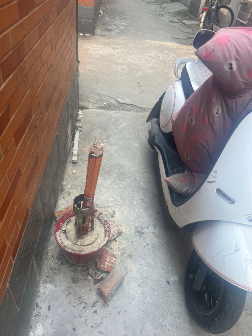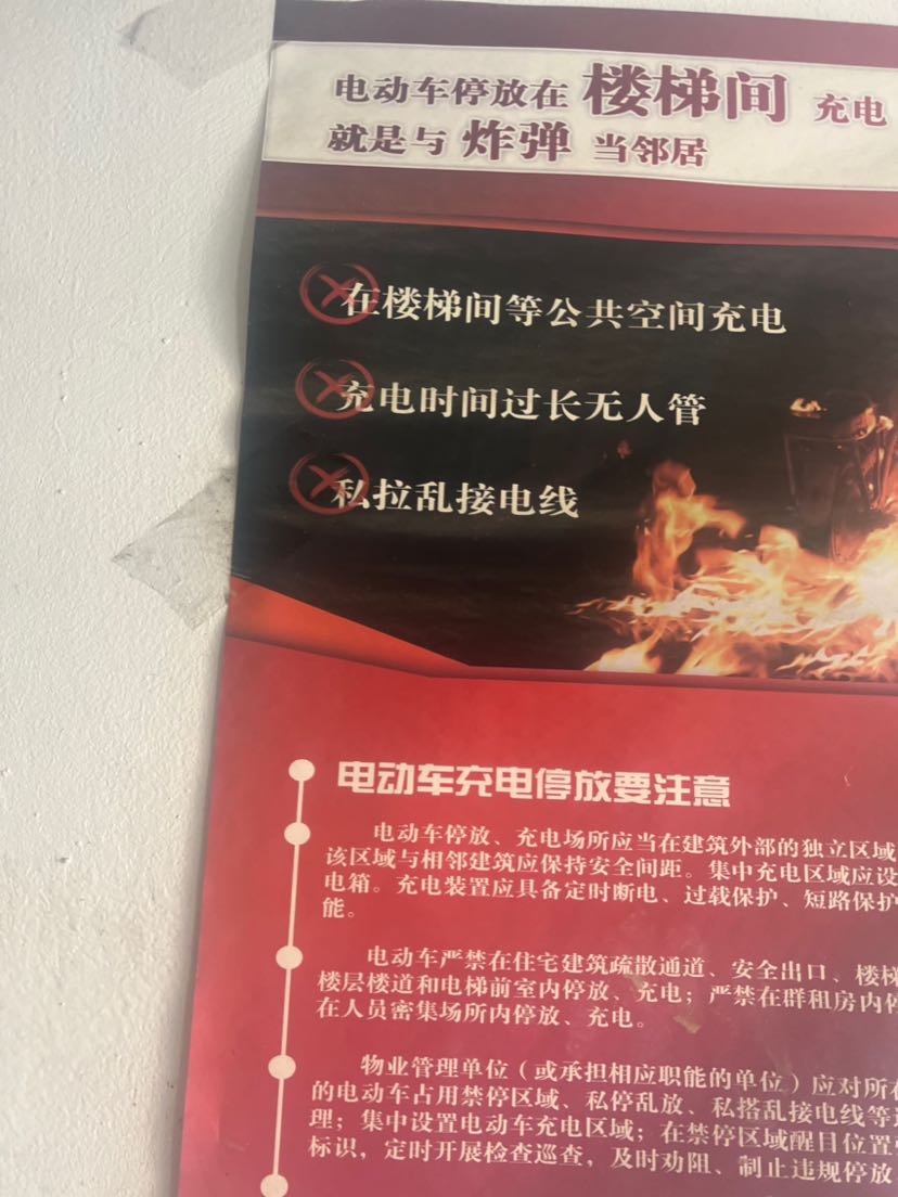 刚刚经过,扬州市江都区,某一小区的居民楼的时候,发现这样的情况:一柱燃香在风中摇曳起火、靠近电动车的放风衣几里米的距离,一旦发生电动车起火、可能能毁掉几辆电动车;不知道是哪位粗心大意的人、不管是停车、还是点香,都一定要预防火灾隐患。为了一个放心舒心,将2辆电动车从点香处推向几米之外、确保火灾隐患清零。(附图片123456