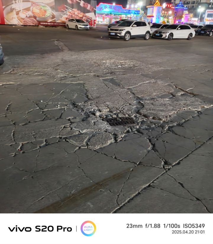 江都区金鹰商场周围的地面停车场的地面破烂不堪。