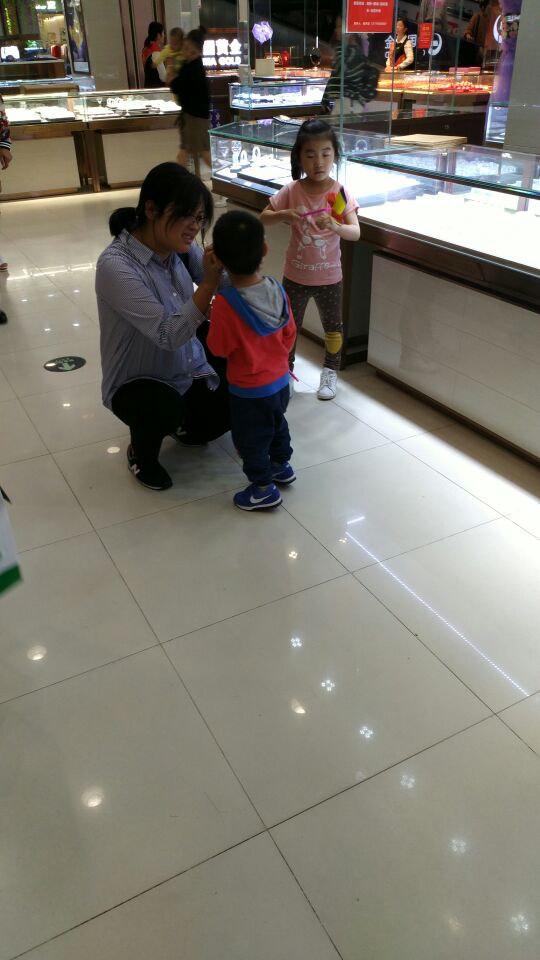 国庆1号 扬州凯德广场 有一小孩找不到妈妈 哭着要妈妈 妈妈着急找孩子 正准备通过总台广播的时候 妈妈看见我 和孩子 激动的泪水都出来了 !