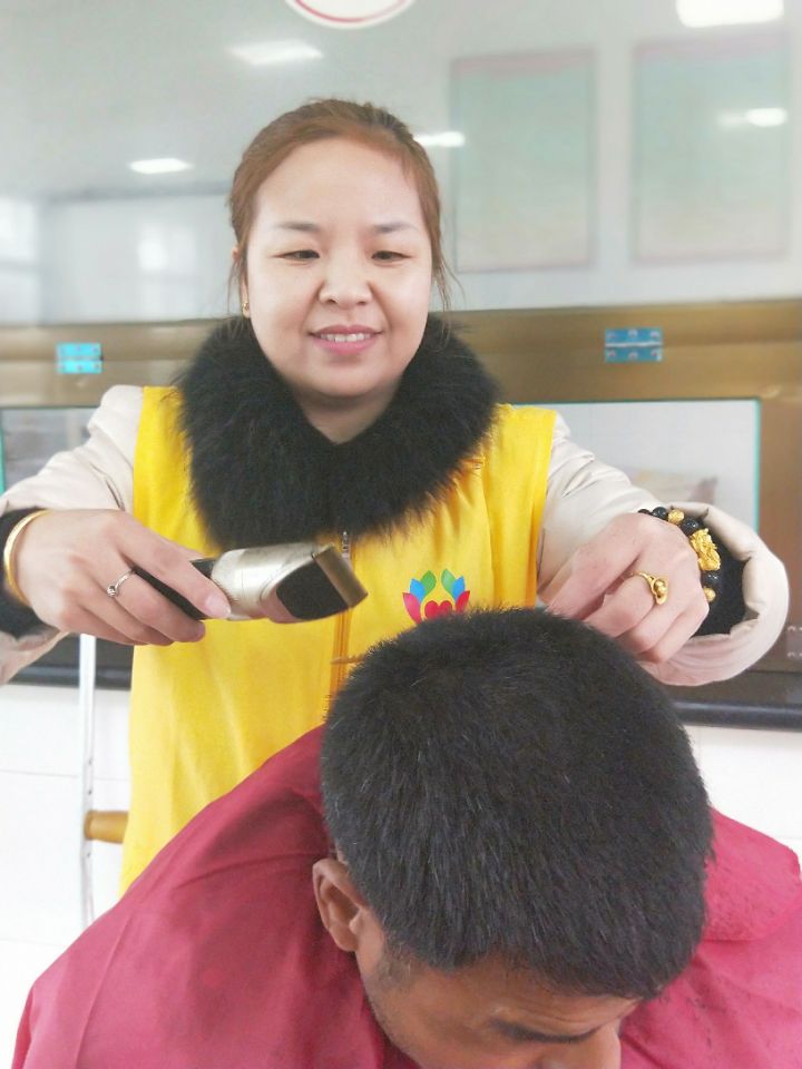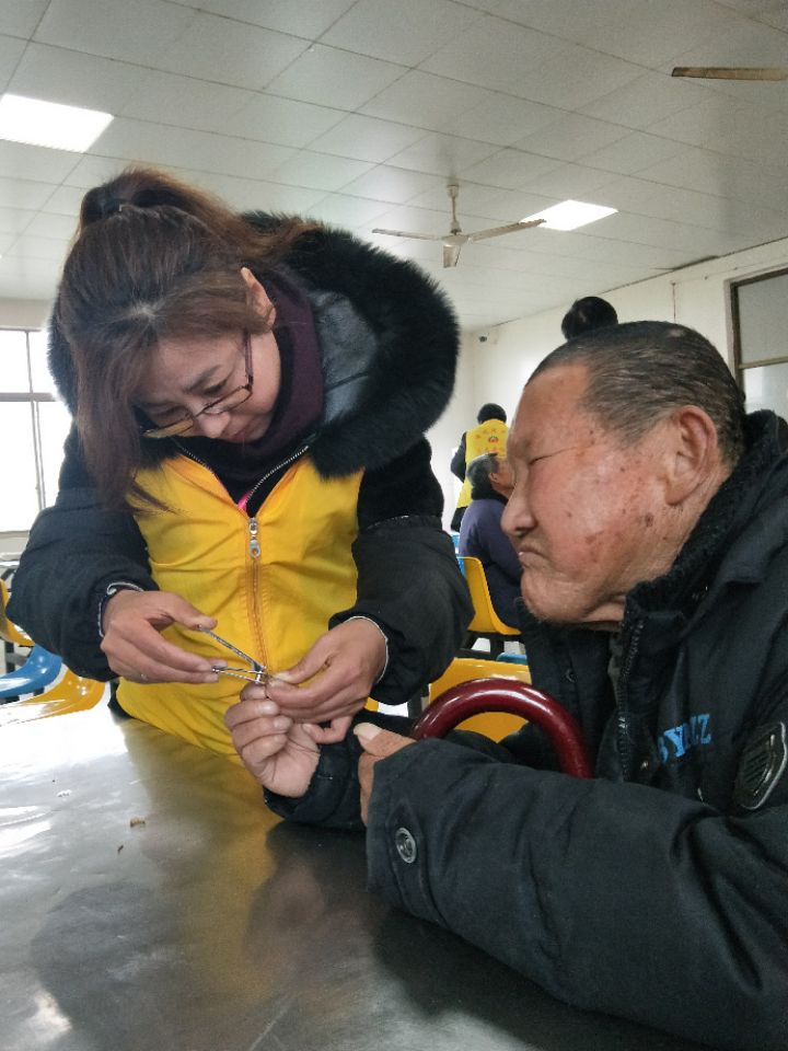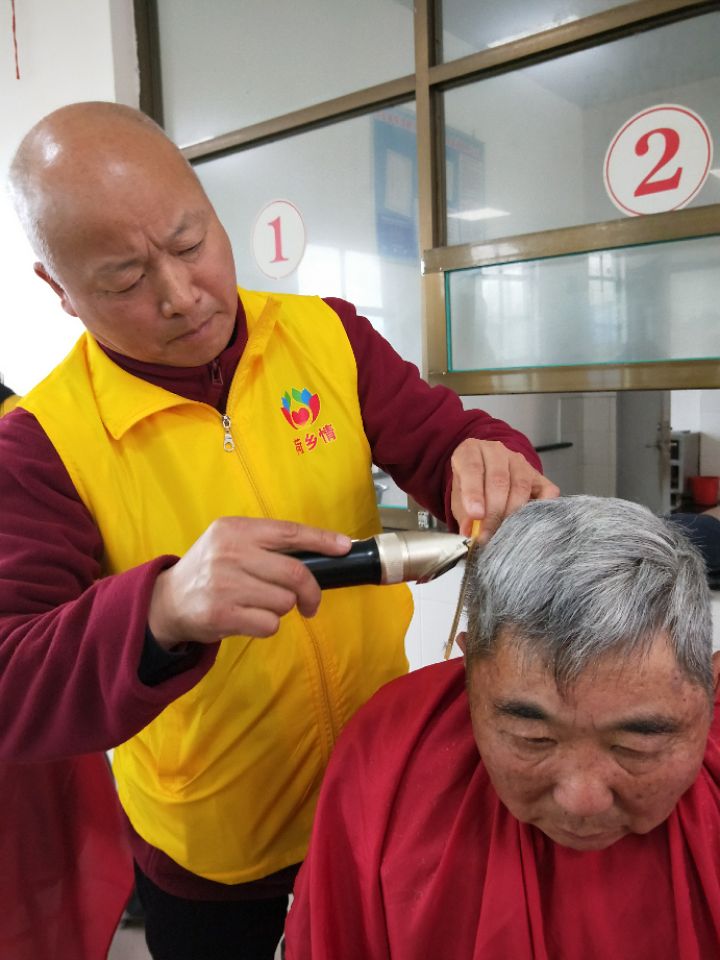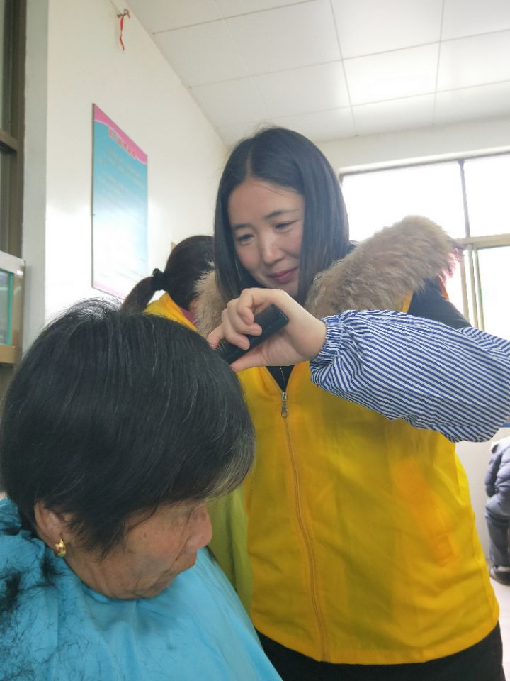 帮爷爷奶奶们理发,刮胡子,洗头,量血压,剪指甲,陪老人聊天,还有三名可爱的小志愿者们在家人的带领下,为老人带去了文艺表演。