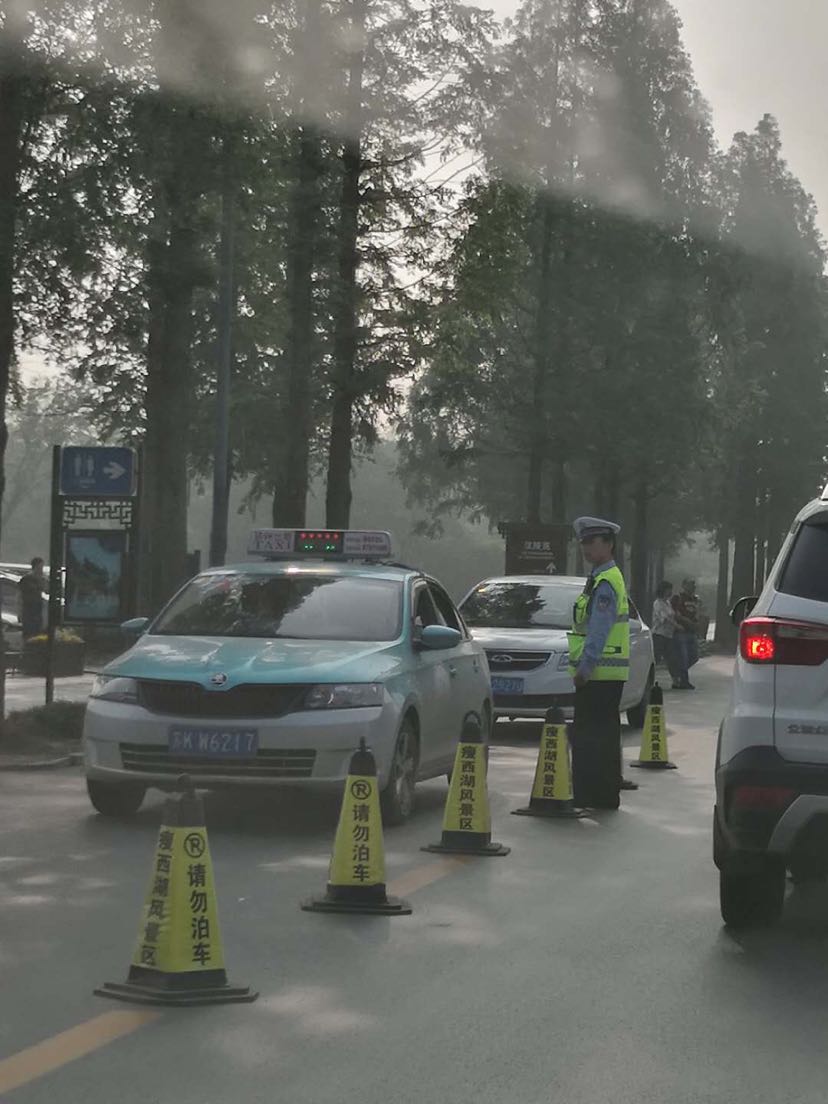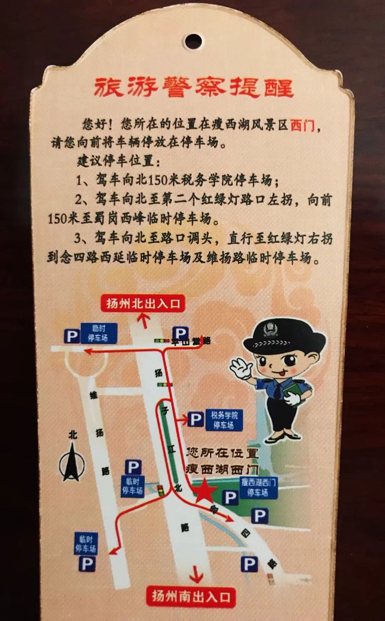 扬子江路与平山堂路交汇维扬岗禁止大巴车、大货车,出租车驶入大明寺方向。
