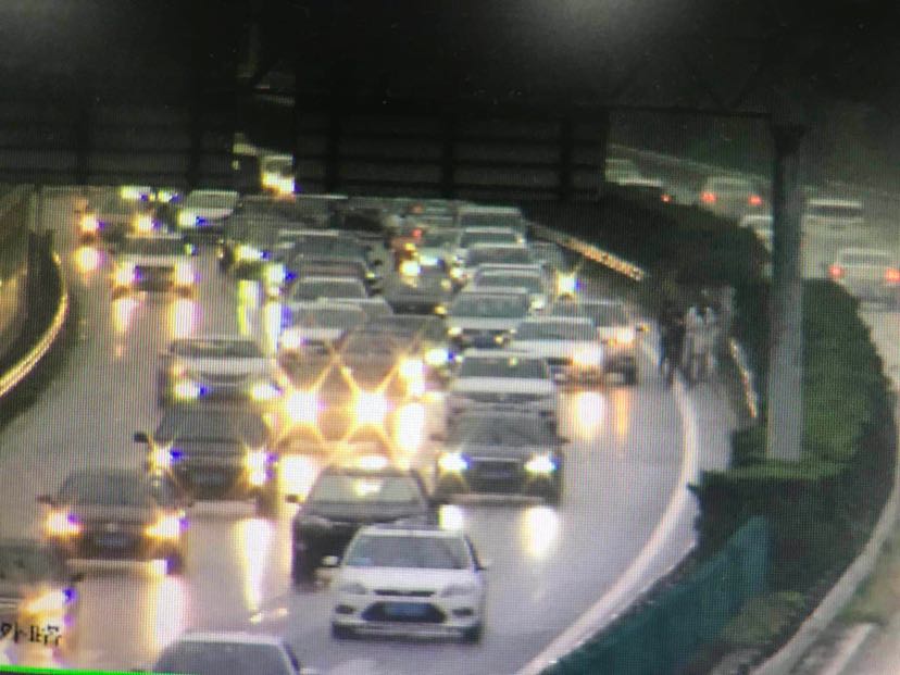 下面再来关缓行路段:G2京沪高速,往北京方向,在扬州段不到八桥出口6k的位置,受之前追尾的事故的影响,后方积压的车辆正在放行当中。