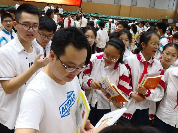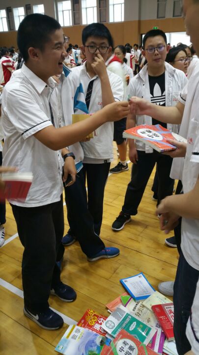期待已久的义卖活动开始了,学弟学妹们抢着挑选众学霸的笔记,尤其倾心于字迹优美的,收益不错哦。