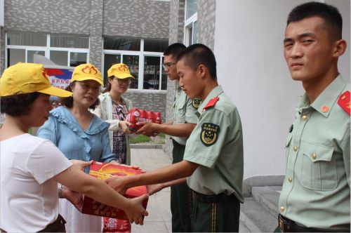 清凉日用品来到驻扬部队预备役高射炮团,慰问我们的人民子弟兵们