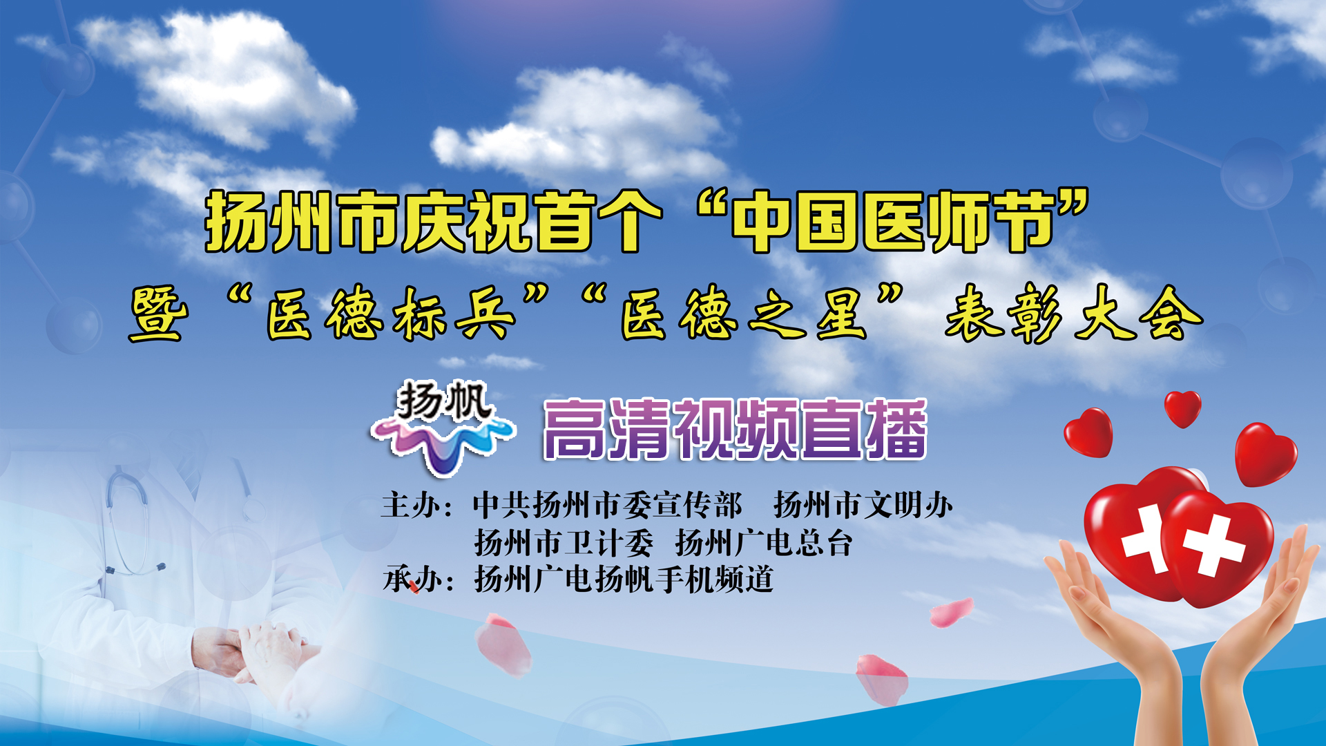 8月17日下午14点30分,由中共扬州市委宣传部、扬州市文明办、扬州市卫计委、扬州广电总台共同主办的“中国医师节”暨“医德标兵”“医德之星”表彰大会将在扬州广播电视总台举行。中国医师节,也是我国继护士节、教师节、记者节之后的第四个行业性节日。