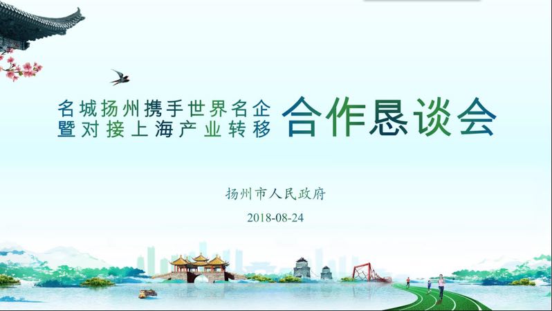 2018名城扬州携手世界名企暨对接上海产业转移合作恳谈会,于8月24日下午在上海举行。