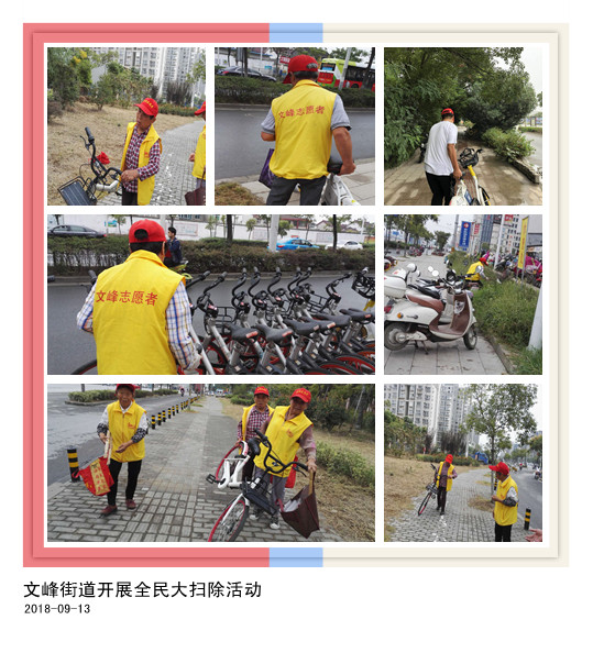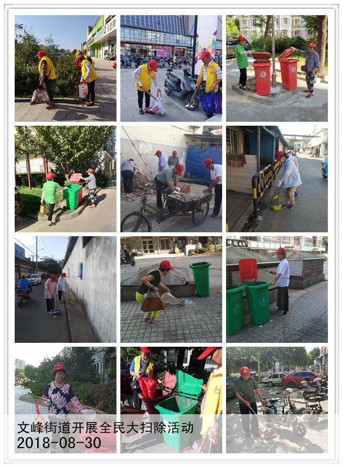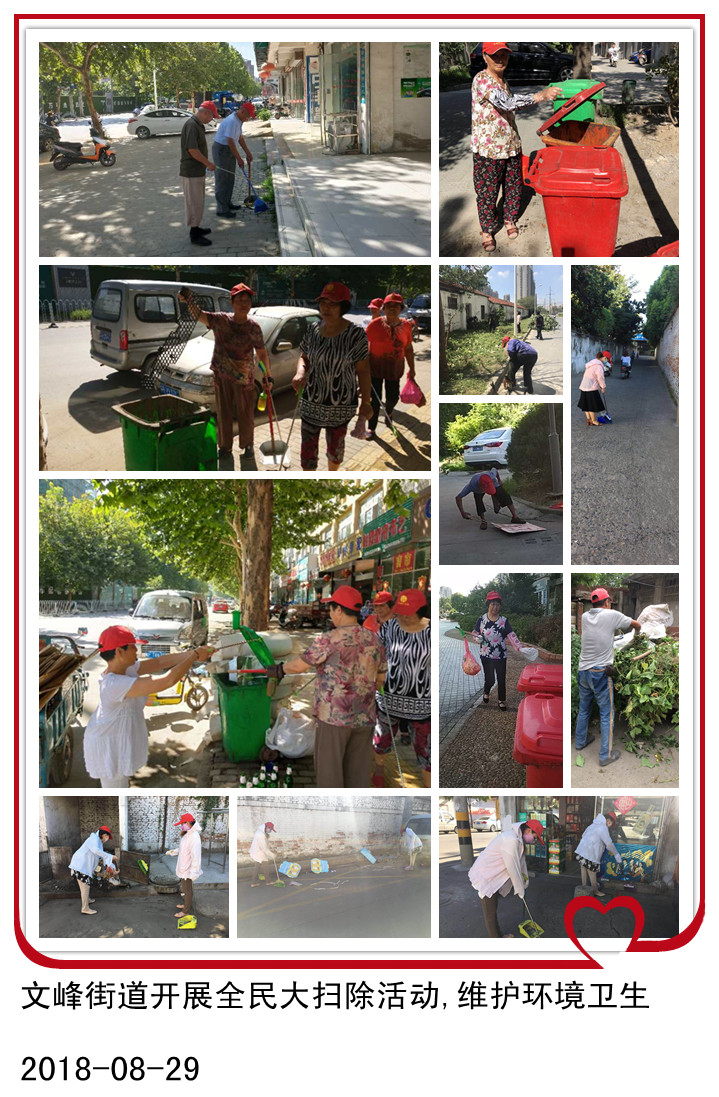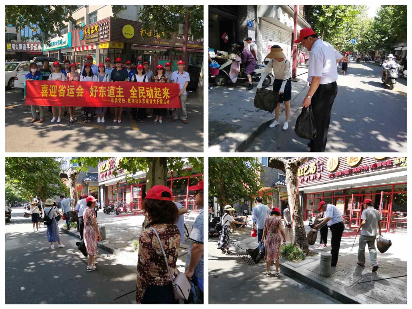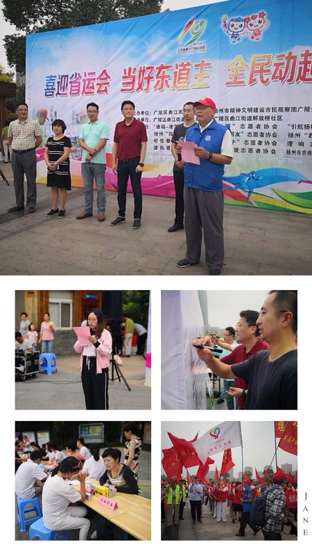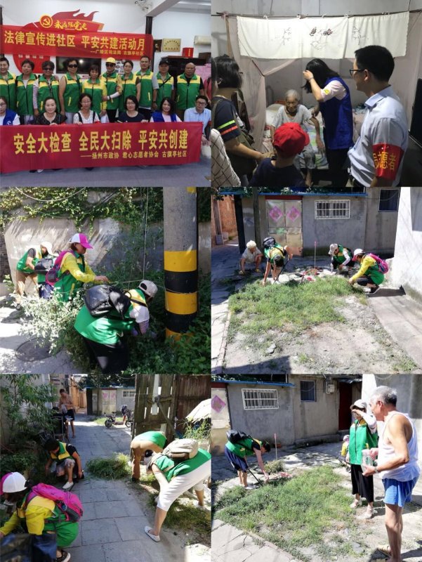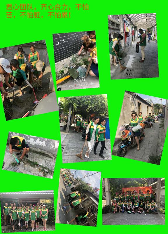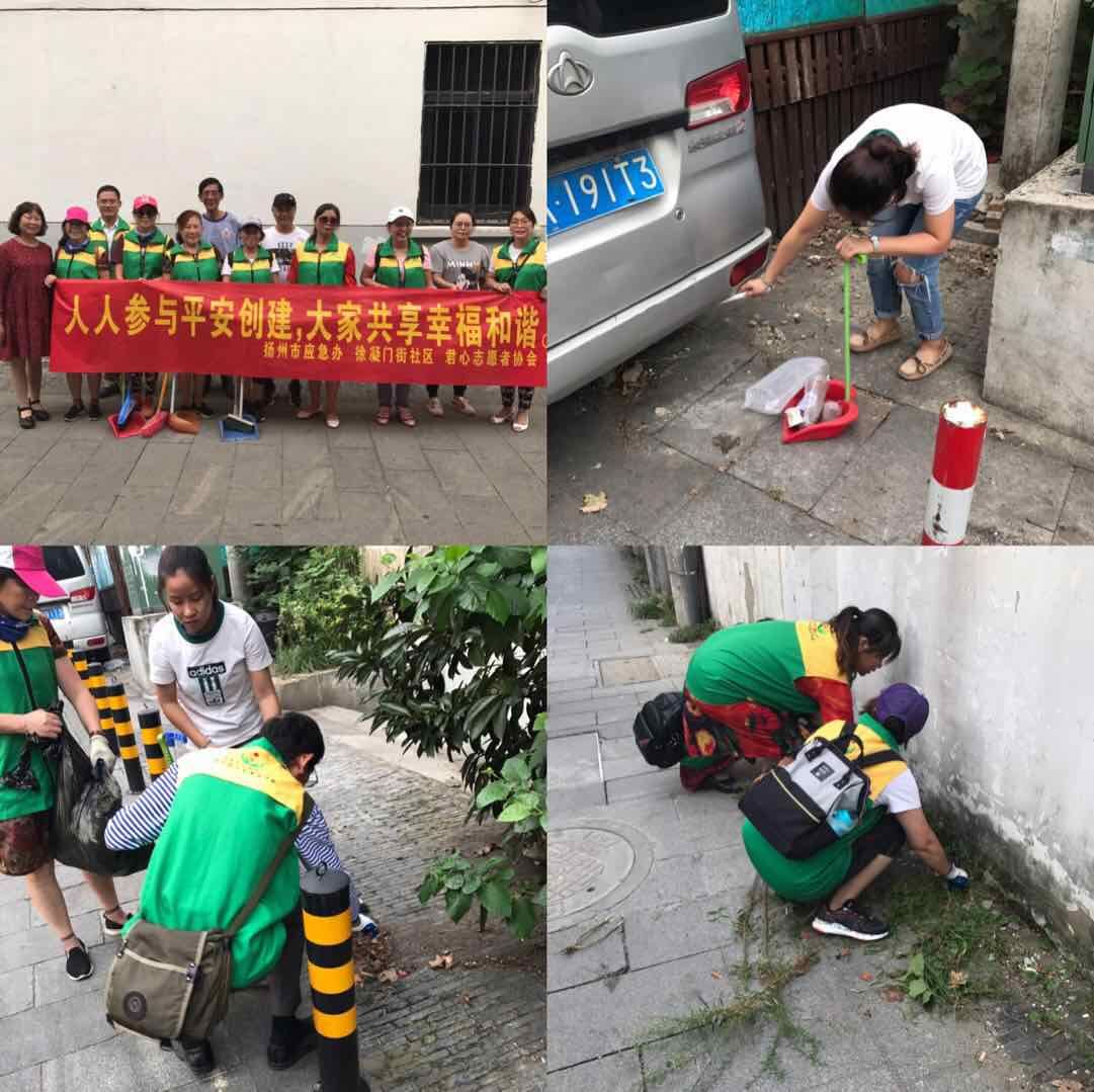 君心志愿者协会积极响应扬州文明办,扬州市志愿者协会的倡议,8月23日君心志愿者走进古旗亭社区大扫除,8月28号君心志愿者走进琼花观社区大扫除,9月4号将走进教场社区,君心团队安排了一个活动表,每周一个社区清理,按照安排表开展喜迎省运会,全民大扫除一系列环境卫生整治卫生死角等活动。