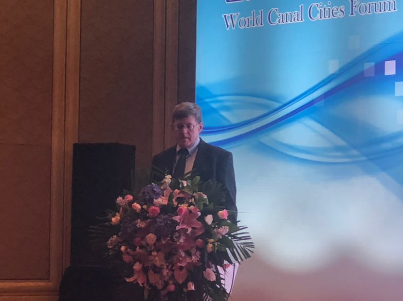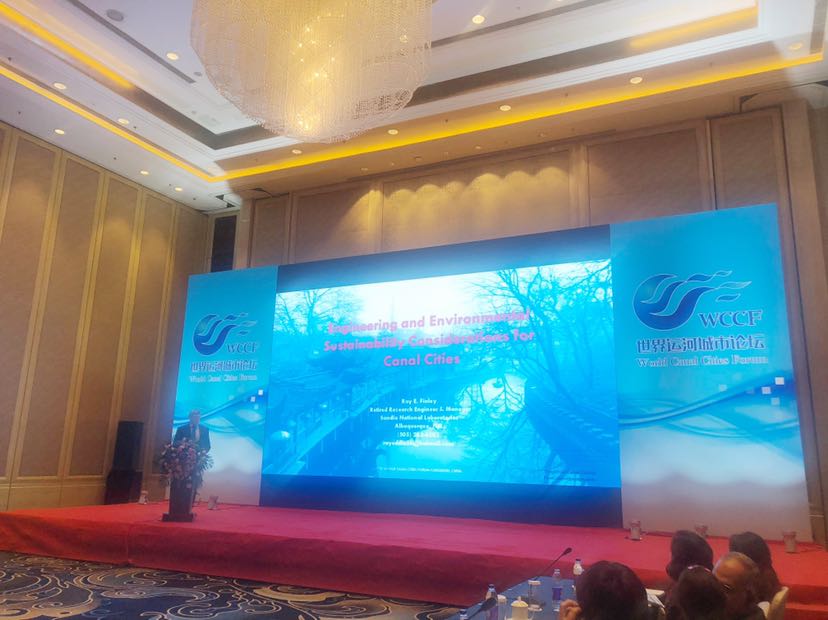 美国桑迪亚国家实验室工程师Ray E Finley发表演讲的题目是“运河城市的工作和环境可持续性考虑”。