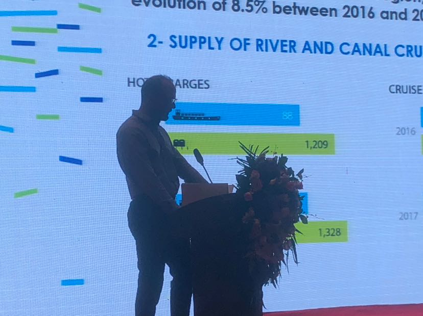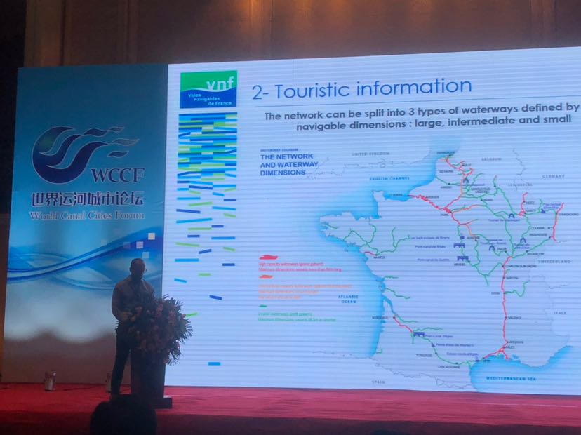 法国航道管理局慈善赞助事业主席劳伦特正在讲话。