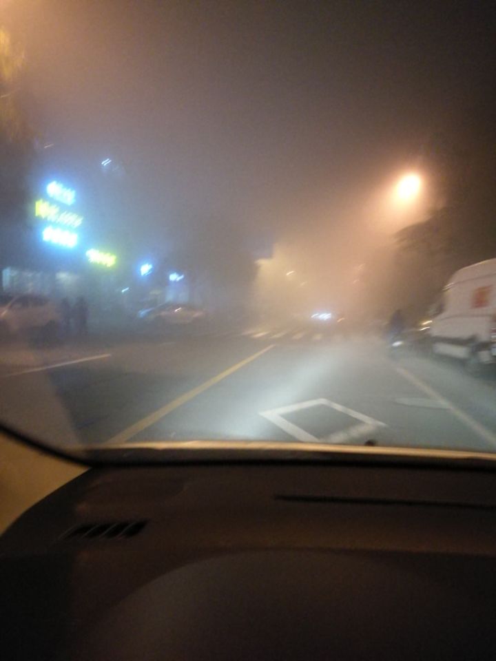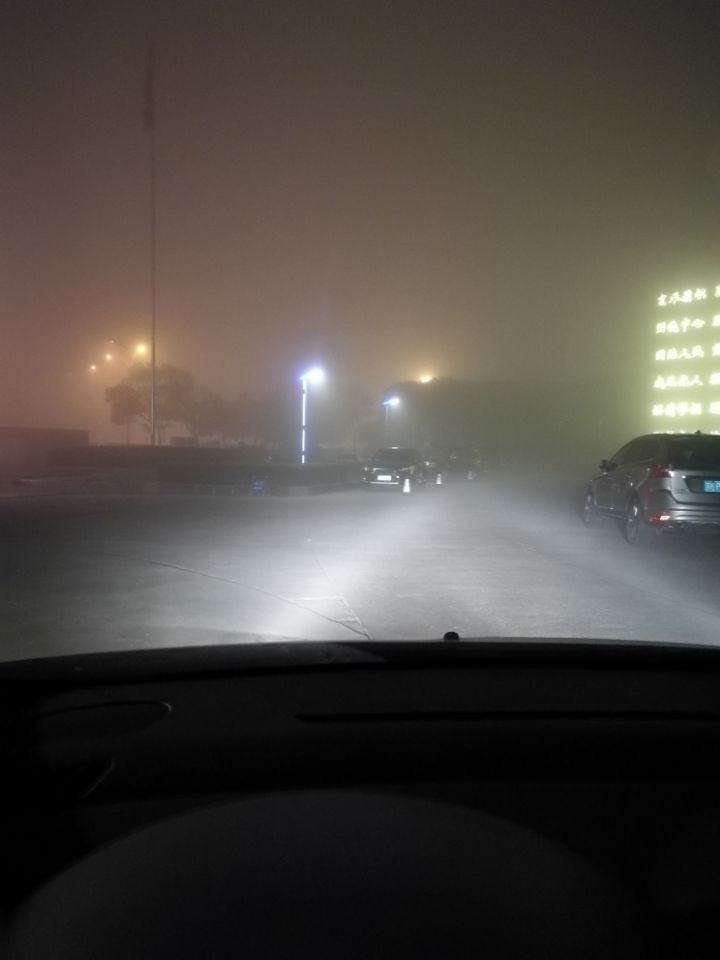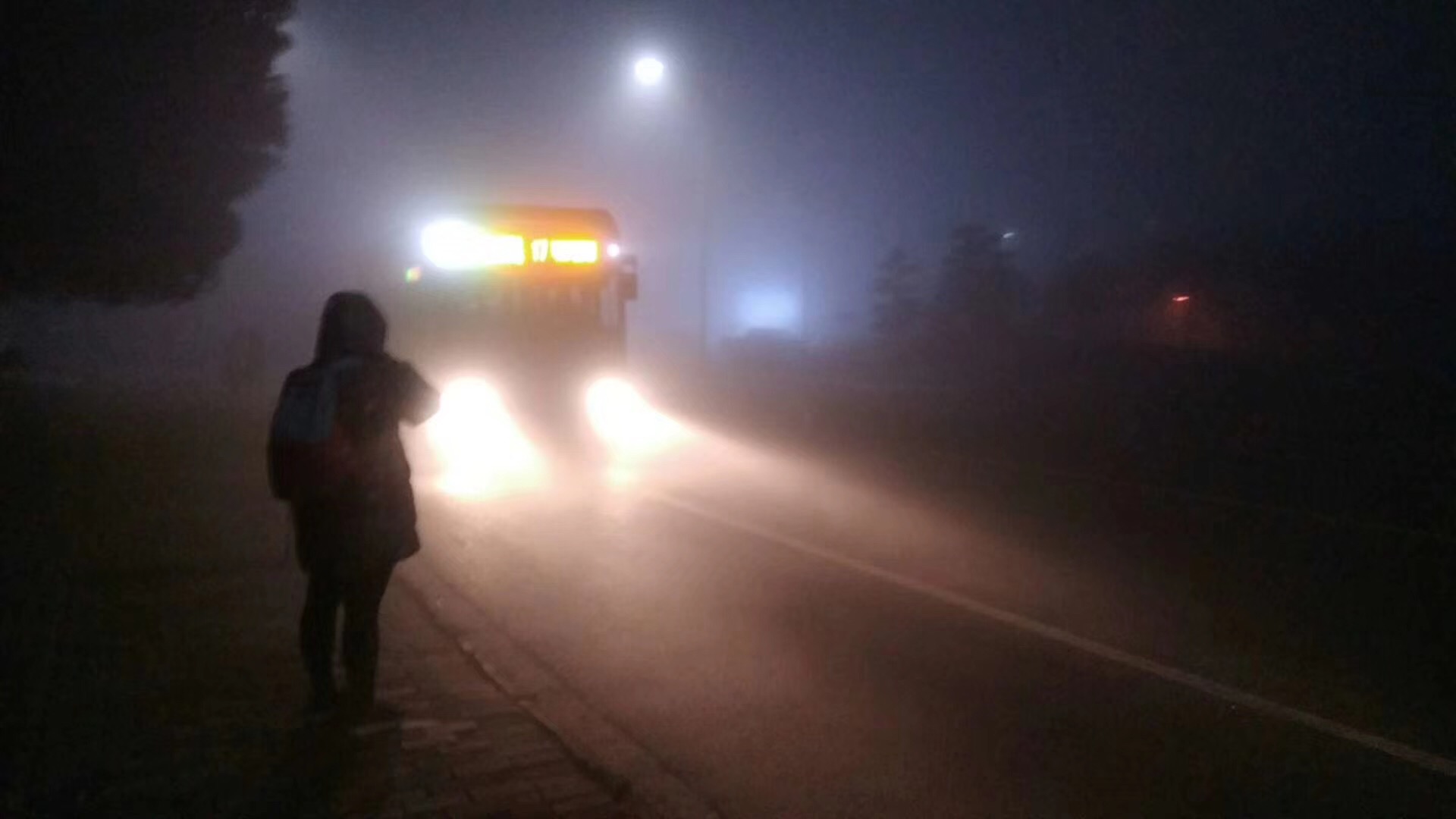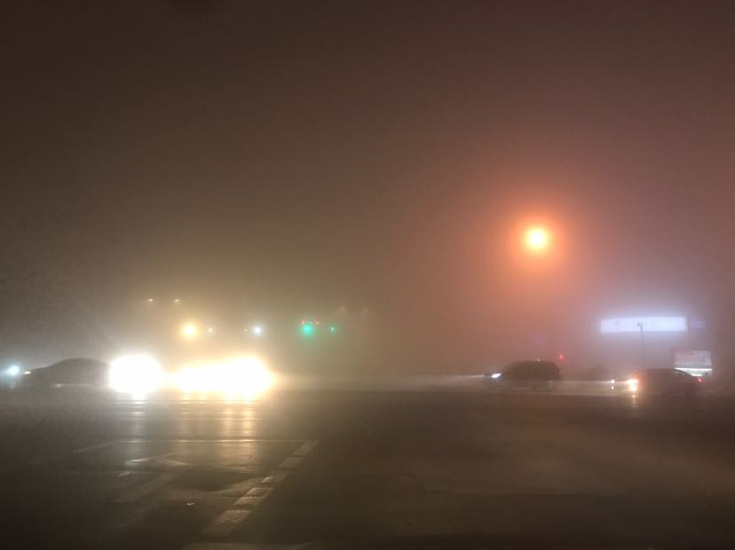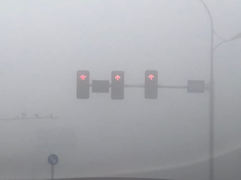 。如果是单向三条车道的话宁要在道路的中间,也不要在马路的两边行驶。因为这时候能见度较低,道路两边如果出现什么情况,不好处理。