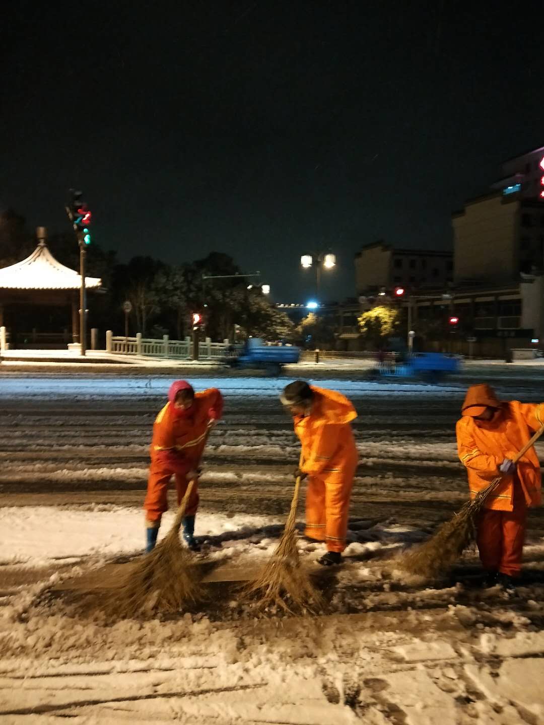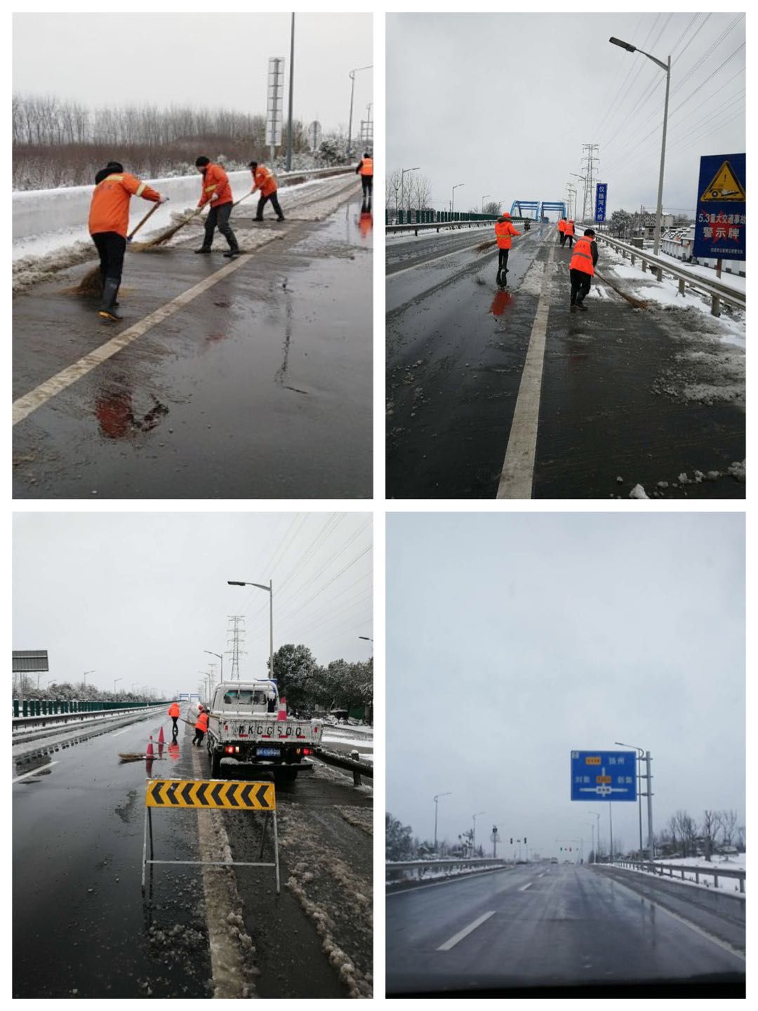 经过数小时的艰苦努力,截至上午8点,扬州国道桥梁积雪已基本清除,全市国道省恢复正常通行。