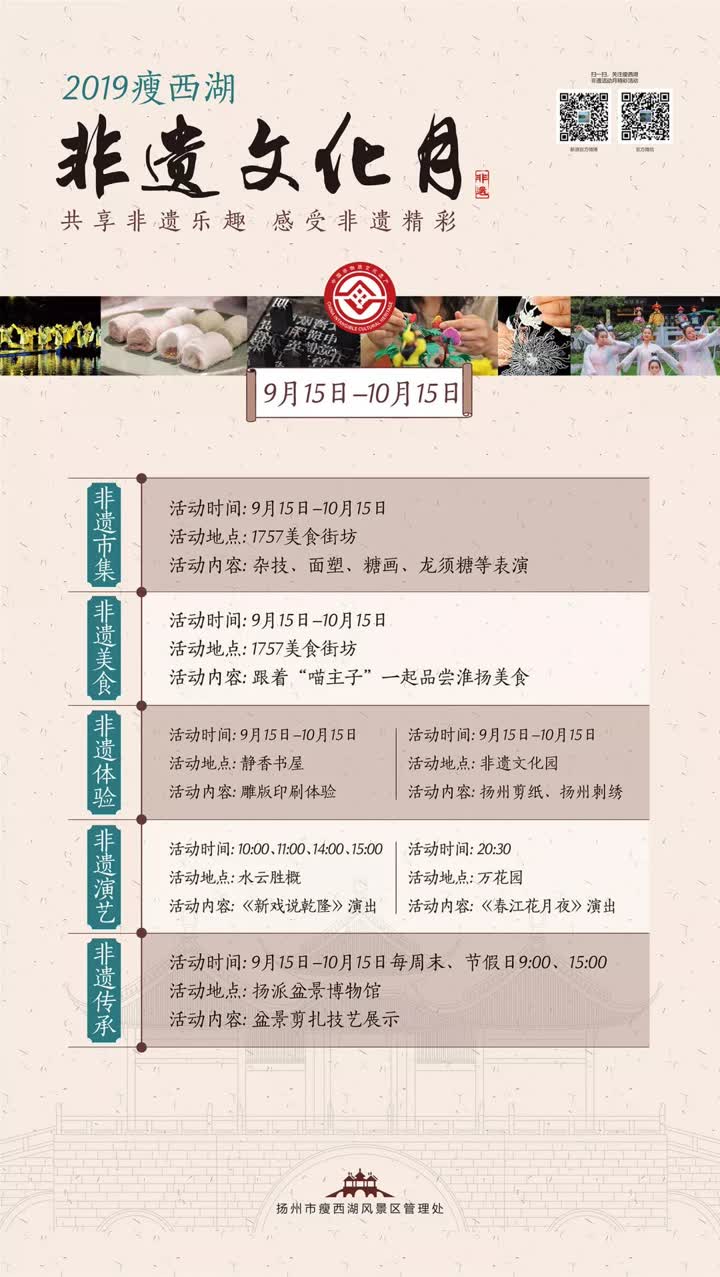 除了上述活动之外,瘦西湖 “非遗文化月”、个园盐商文化节、快板、清曲表演……“十一”黄金周期间,还有很多文旅活动等着你。