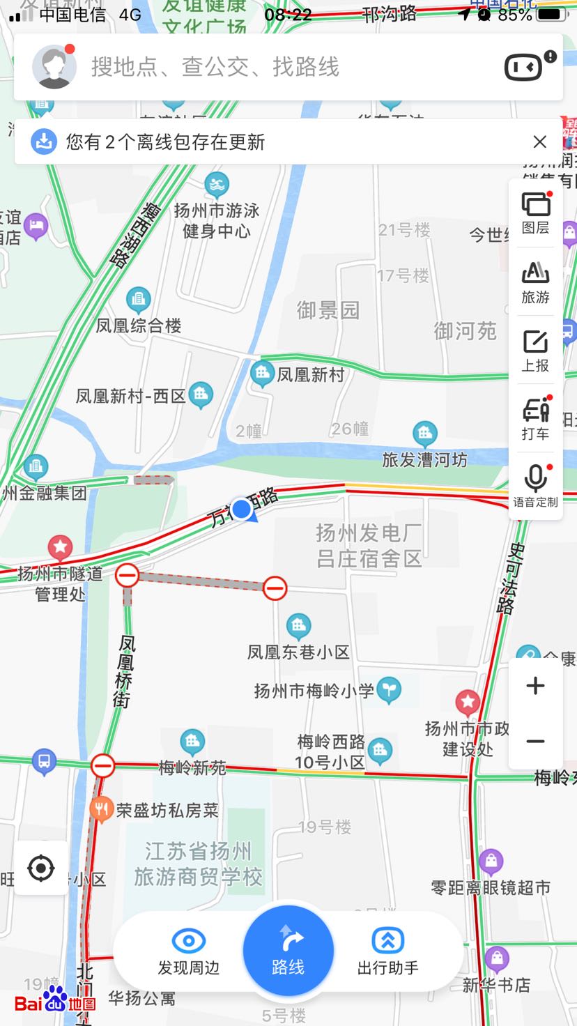 除此之外,各个学校门口、各大医院周边道路、车辆排队。早间东西向出行,可选择瘦西湖隧道。南北向:邗江路、大学路、新城河路。