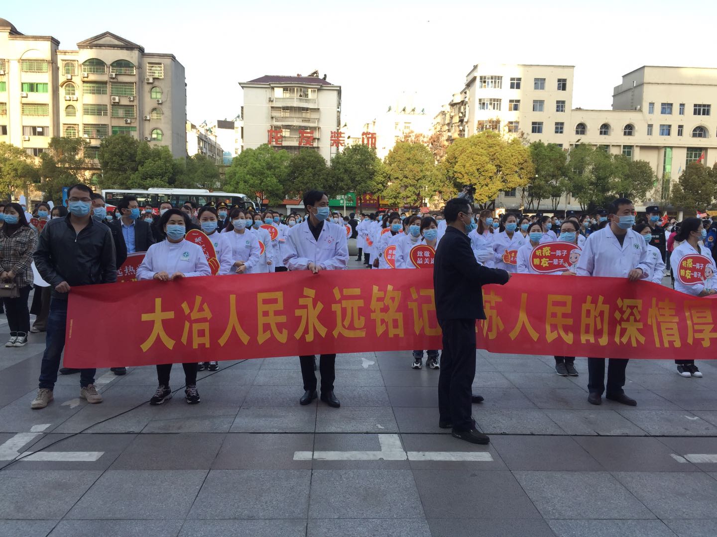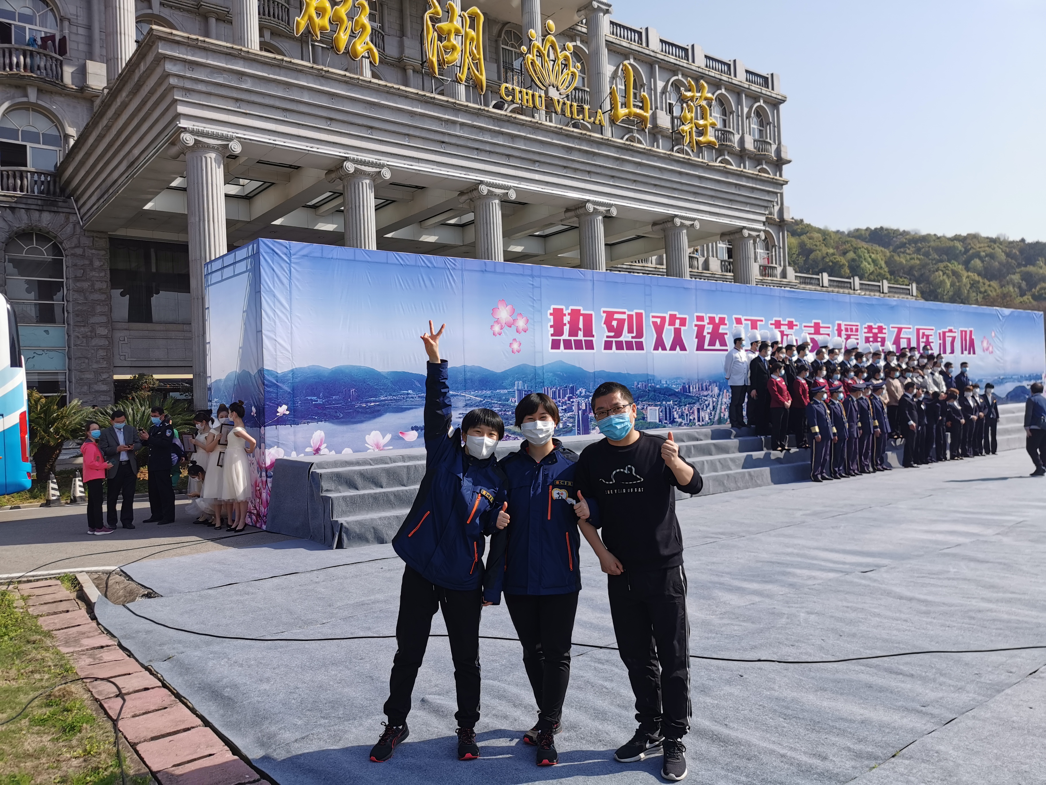 好多市民自发来到街头欢送,好感动,来的时候是深夜,走的时候阳光明媚,大冶人民很热情。(高邮市中医医院韦佳)