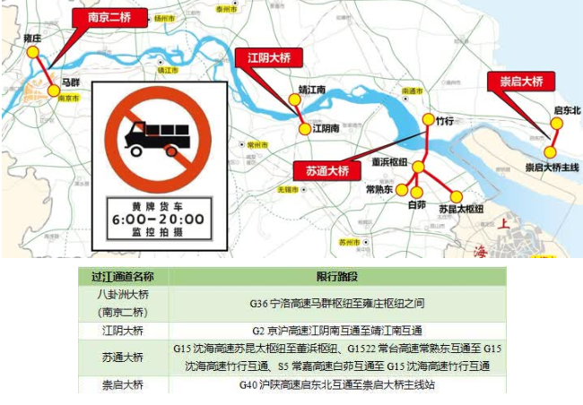 最后提醒大家:清明假期,也就是4月4日至4月6日。南京二桥、江阴大桥、苏通大桥、崇启大桥,针对部分黄牌货车,每天早上的6点到晚上8点禁止通行,并且危化品车假期三天全天候禁止通行。请车友们可以提前规划好行车路线。