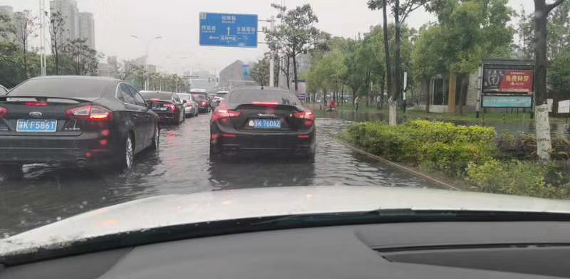 北区扬杰电子厂附近积水很深,广大车主如遇类似情况,不要启动你的爱车!!拨打电话,等待救援!