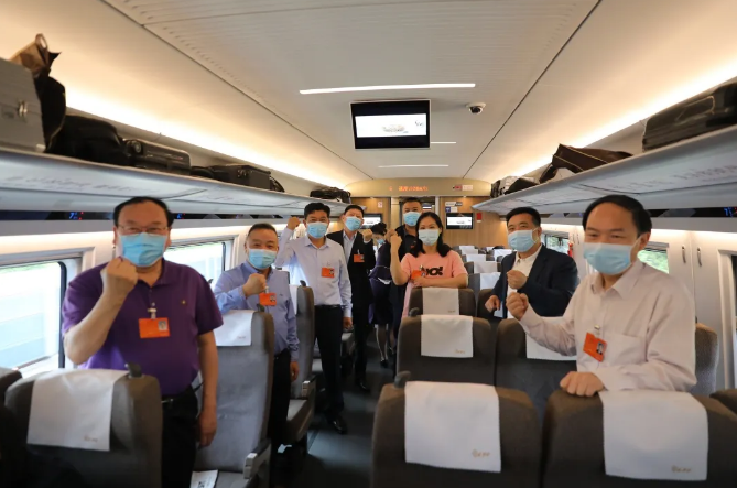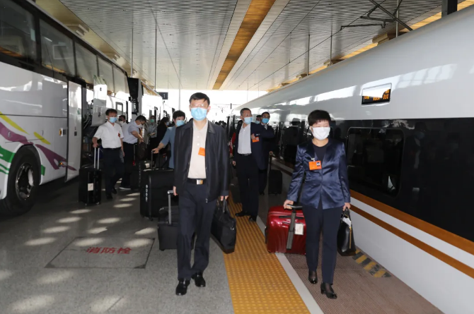 早上8点30分,扬州全国人大代表焦新安、王静成、周善红、高毅进和莫元花在南京南站乘坐G20次列车,统一集中去北京报到!高铁上,代表们全程带口罩。