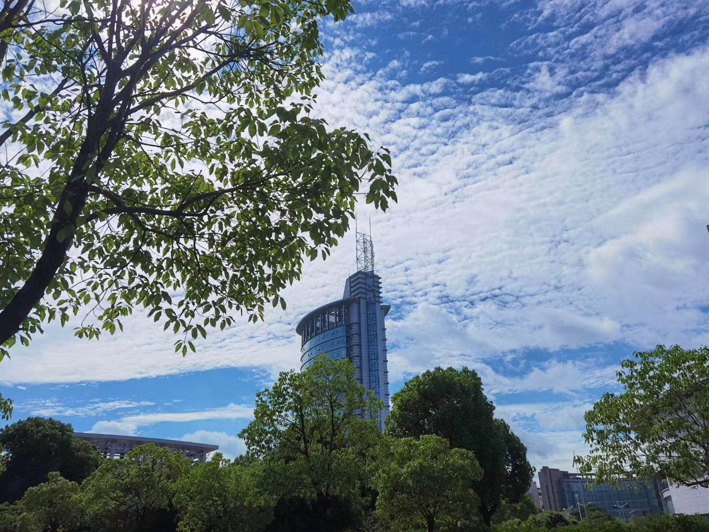 经历了前两天雨水和大风的“洗剪吹”全套服务,雨过天晴的扬州打开了滤镜模式,湛蓝的天空搭配大片的云朵,抬头就能看到超清蓝天大片,随手一拍都能做屏保。这样的梦幻场景瞬间刷屏了大家的朋友圈,也让发“霉”的心情阳光起来。