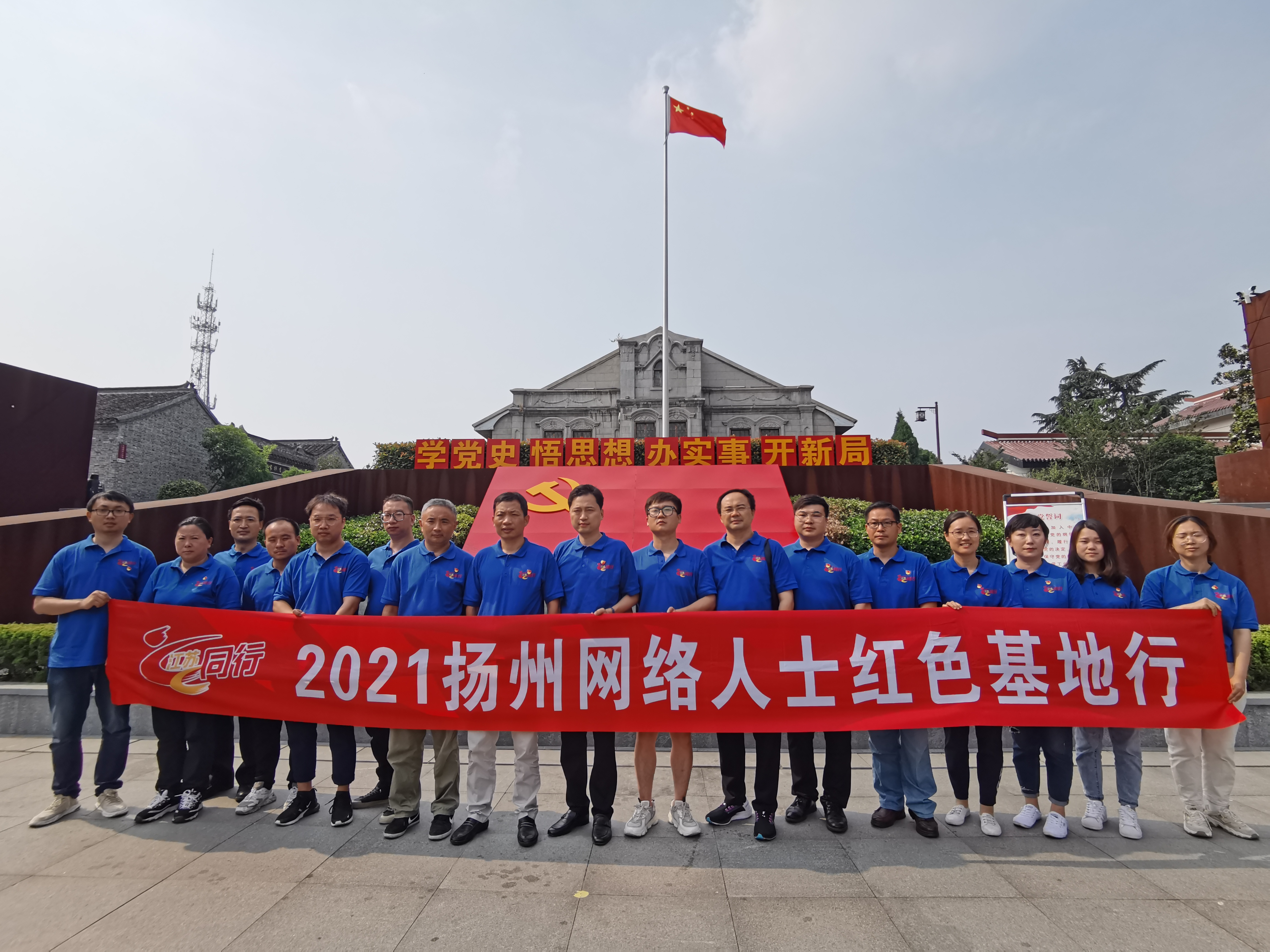 6月11日,中共扬州市委网信办组织开展“i 江苏 e 同行”全省网络人士红色基地行暨扬州市“百年路 奋斗史”红色寻根活动,扬州市重点网络媒体、有影响的网络人士、网络社会组织负责人、重点互联网企业负责人、自媒体协会成员等约25人,通过红色基地寻访,共同走进扬州百年风雨兼程,扬州共产党人坚守初心,扬州人民砥砺奋进的辉煌史诗,弘扬和传承红色革命精神。