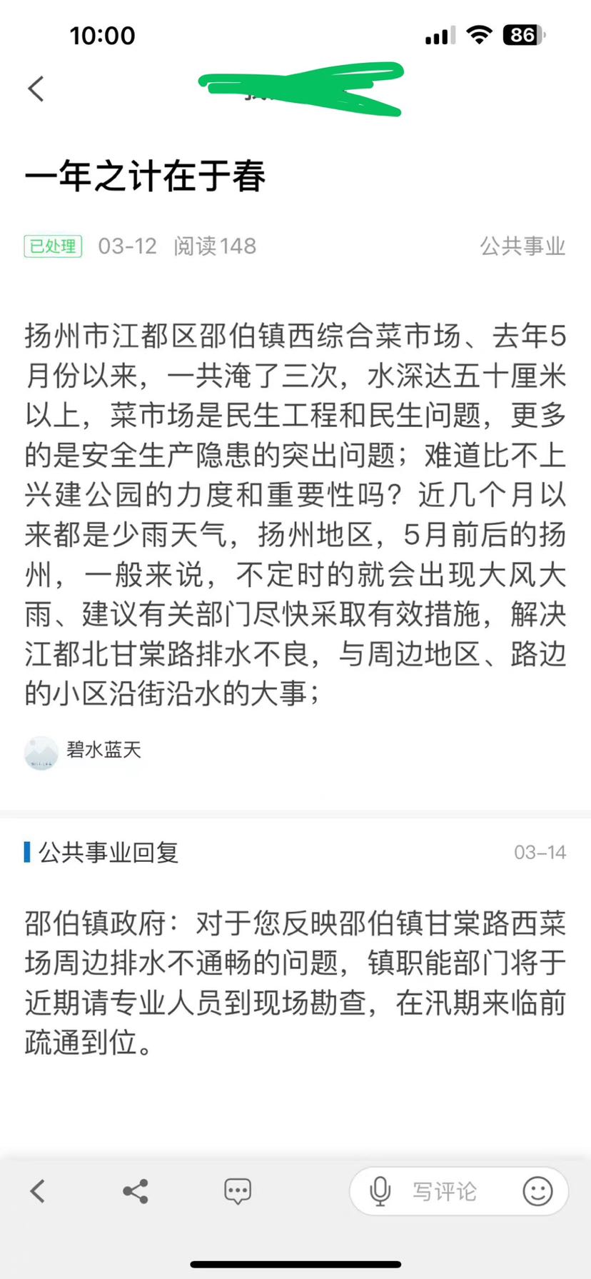 半条街的水流入另一边半条街;甘棠路是分界线;几十年的甘棠路,公路缺陷也是排水不连通不入河,公路南区成了"淹水区",邵伯综合市场成了水中的"划船区"解决方法有很多,关键是重视程度和力度都比较小…