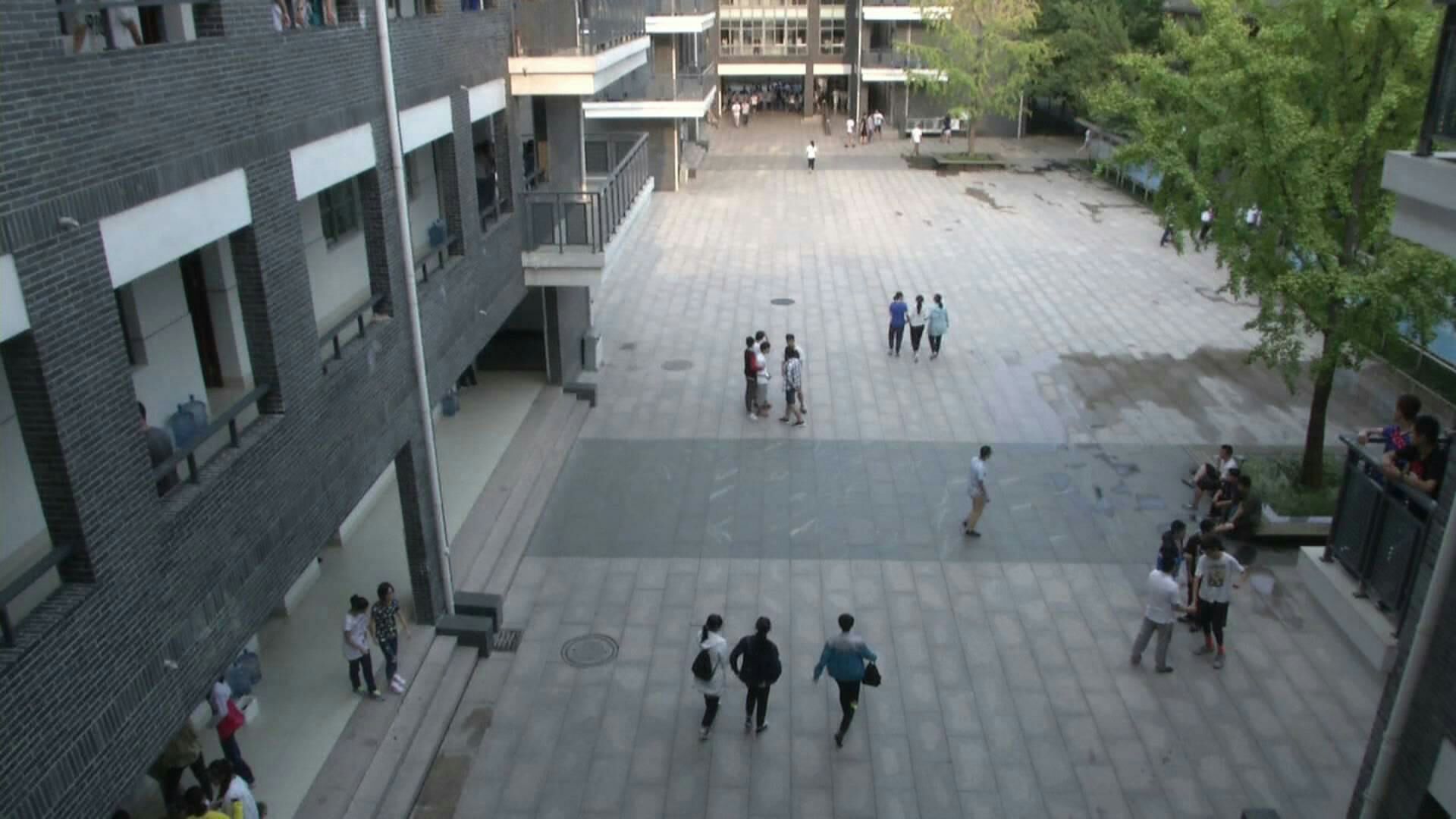 学生们正在聆听校领导的发言