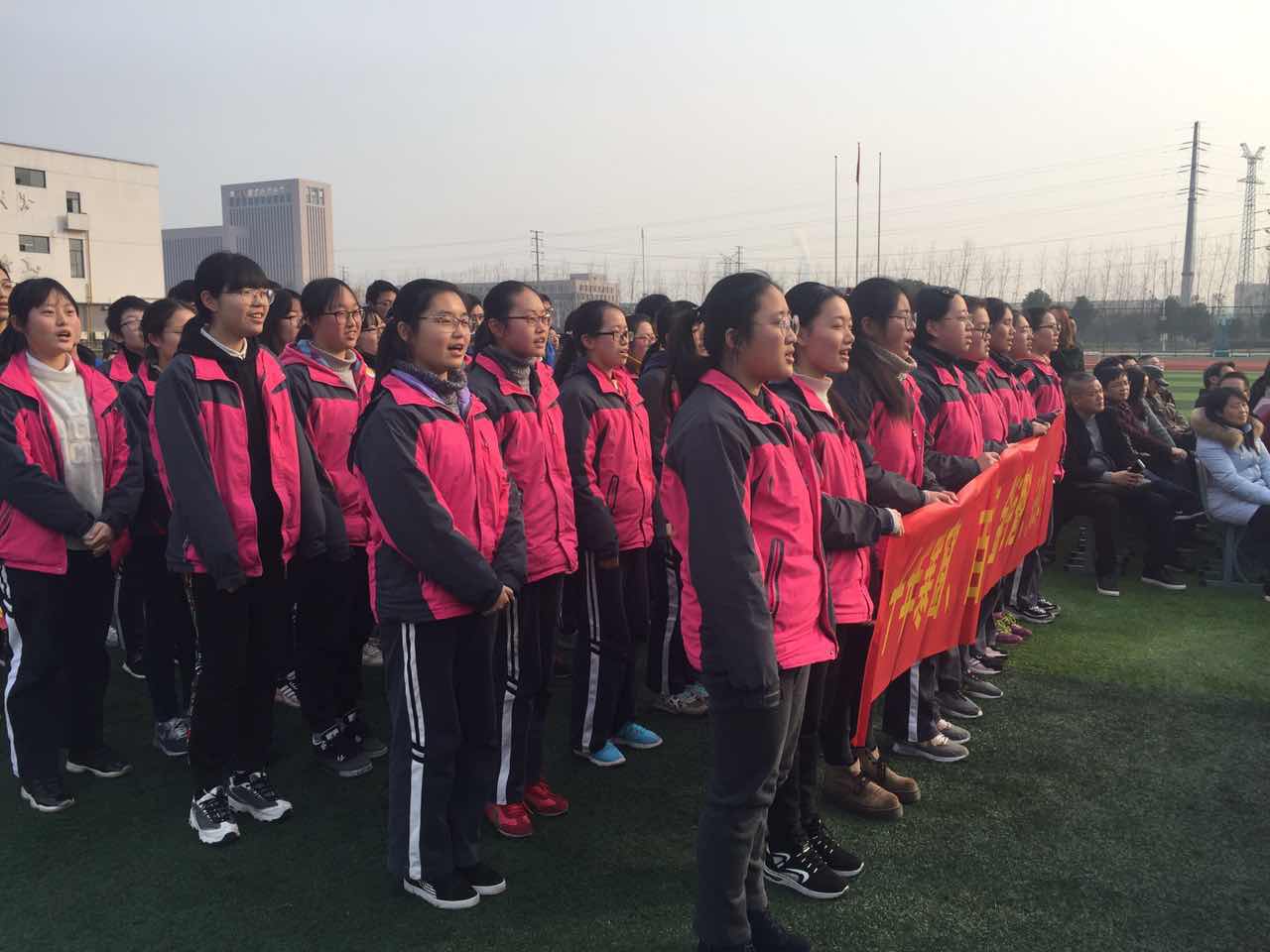高一、高二学弟学妹们跑操为高三学子加油