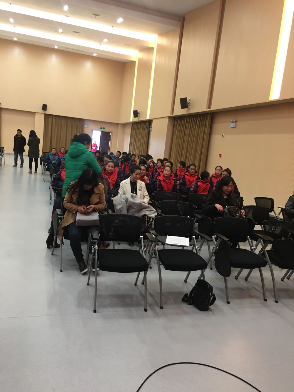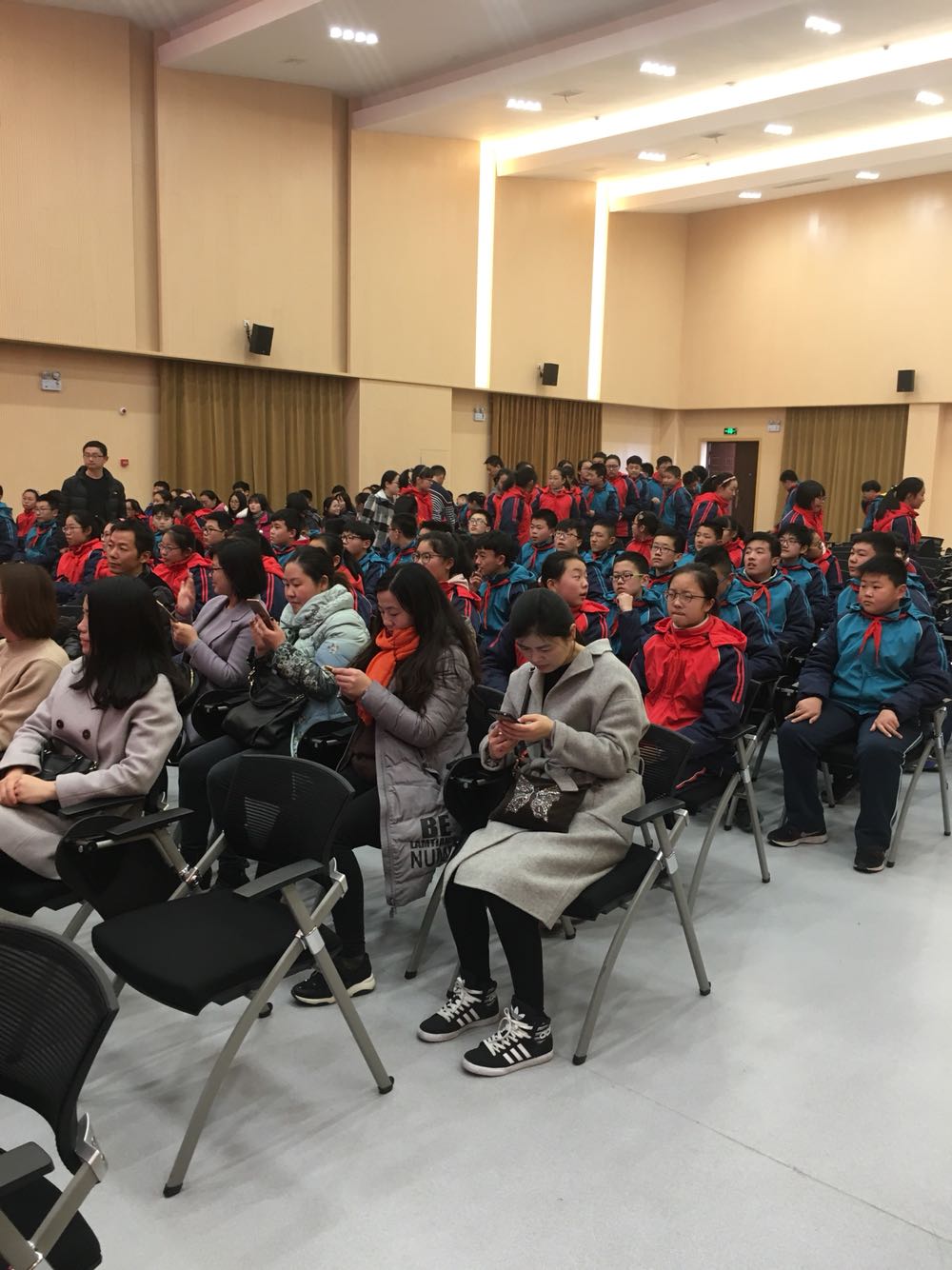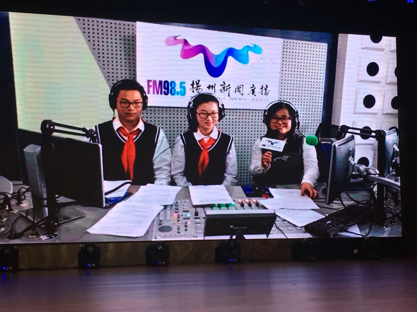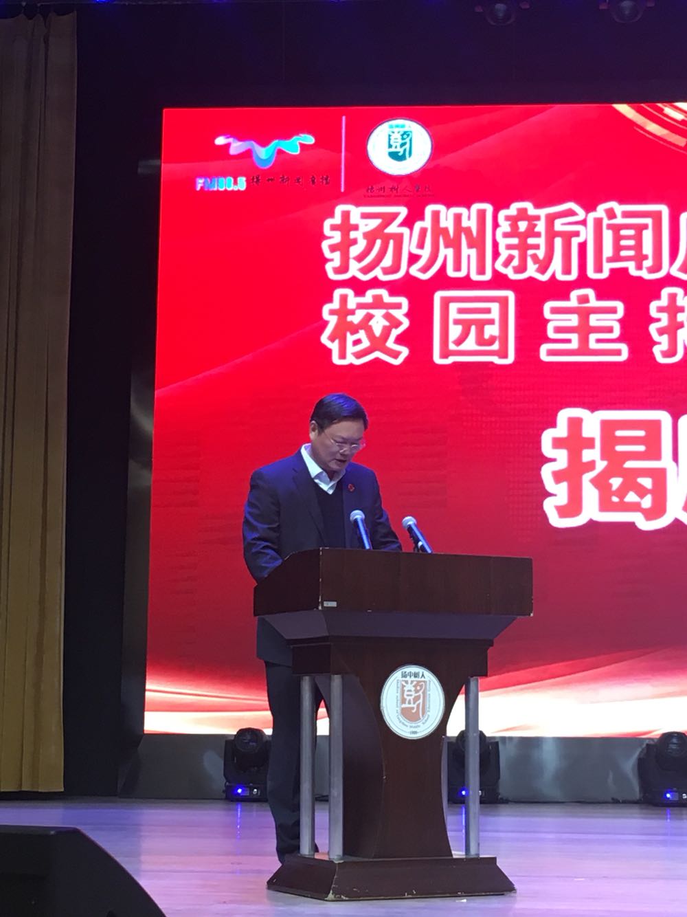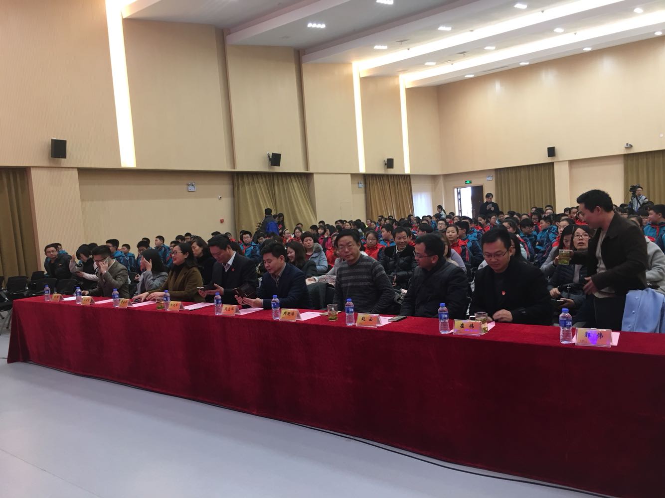 “树人记者站、校园主持人实训基地”成立暨揭牌仪式#市教育局副局长周应华、扬州广播电视传媒集团(总台)副台长周明涛、市教育局基教处处长赵云、扬州树人学校校长陆建军等领导、嘉宾就坐。同学们也很期待奥!