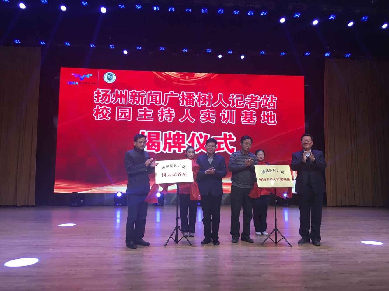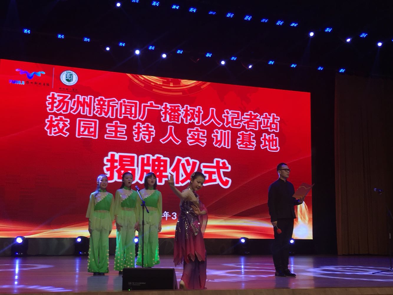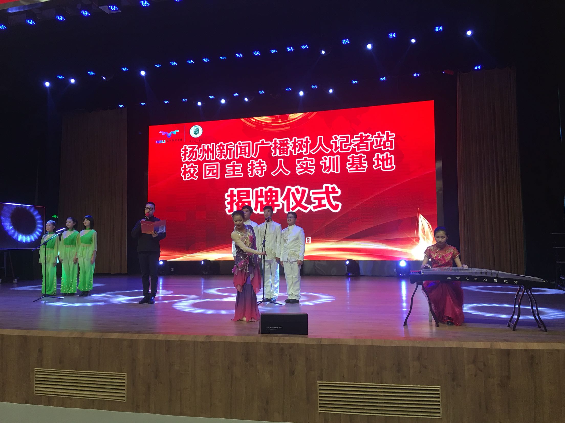 “树人记者站、校园主持人实训基地”成立暨揭牌仪式#开场节目《春江花月夜》由树人学校学生、扬州新闻广播直播联合带来。