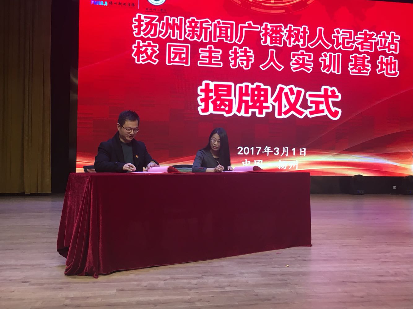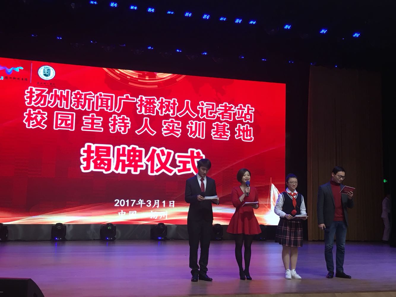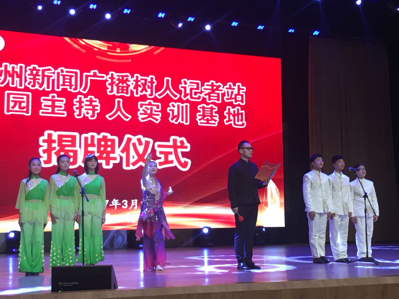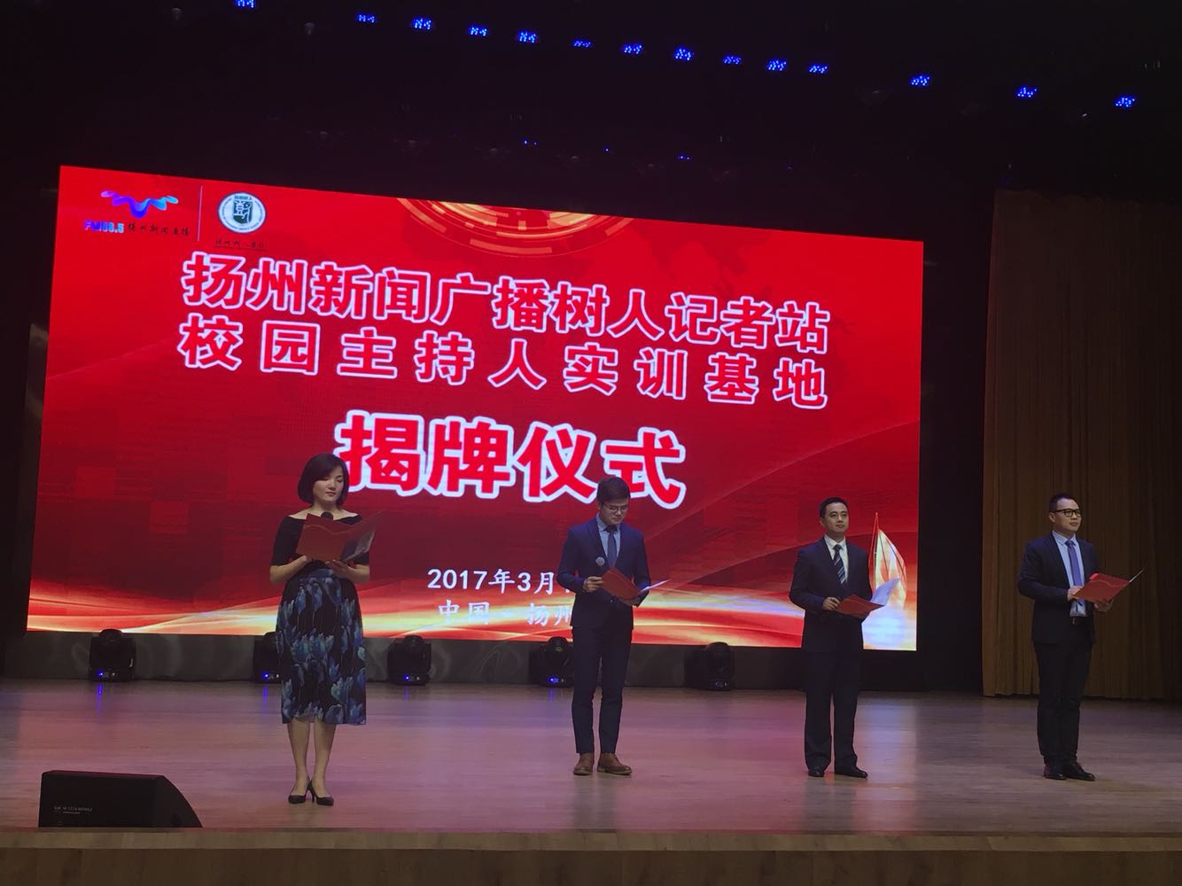 “树人记者站、校园主持人实训基地”成立暨揭牌仪式#开场节目《春江花月夜》由树人学校学生、扬州新闻广播直播联合带来。