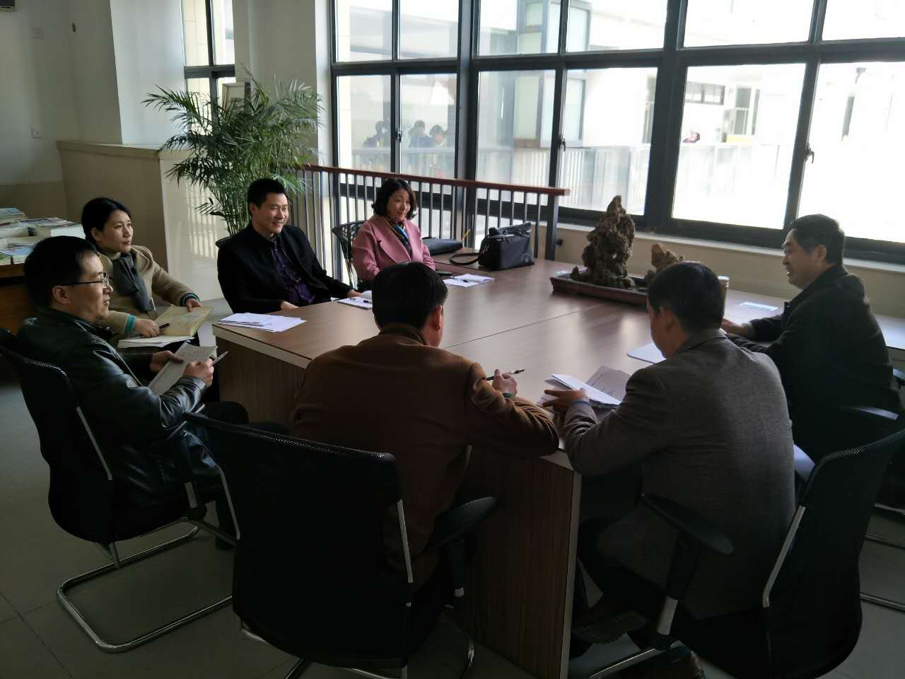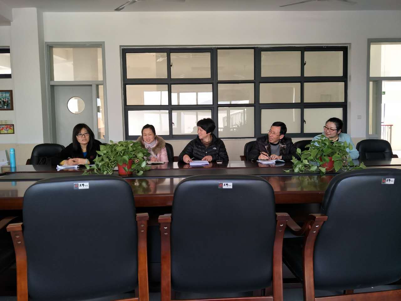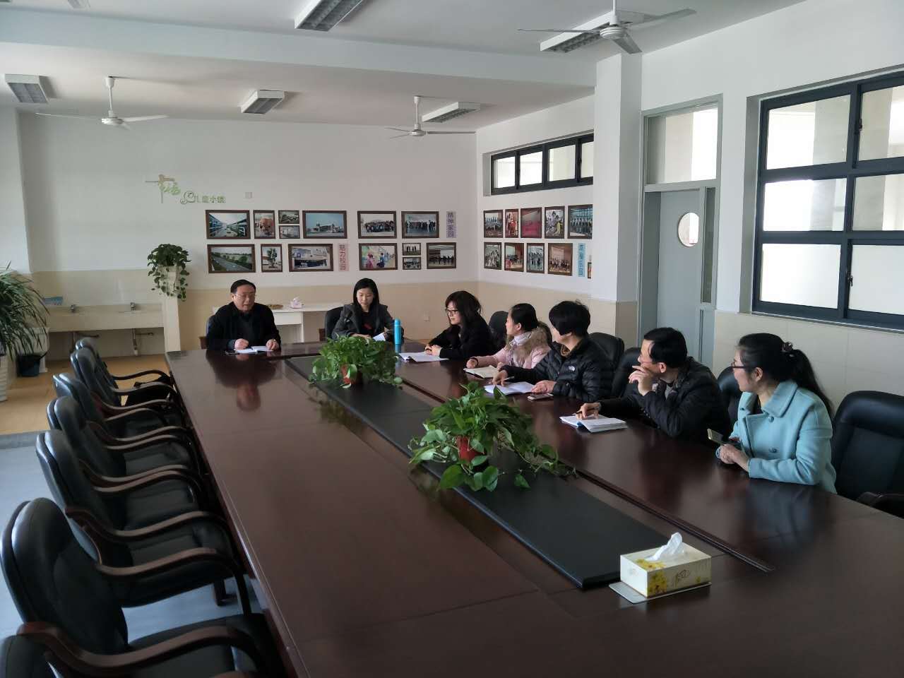 领雁班师生在教师会议室内研讨