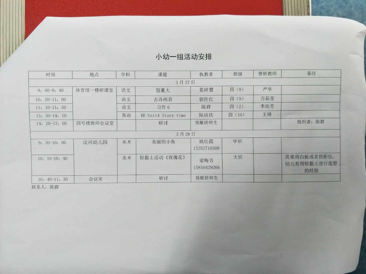 活动安排表