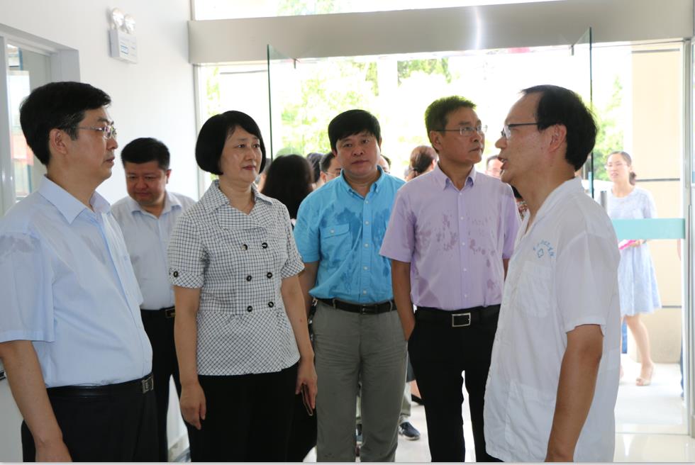 领导、嘉宾观摩新的社区卫生服务站和残疾人康复室。