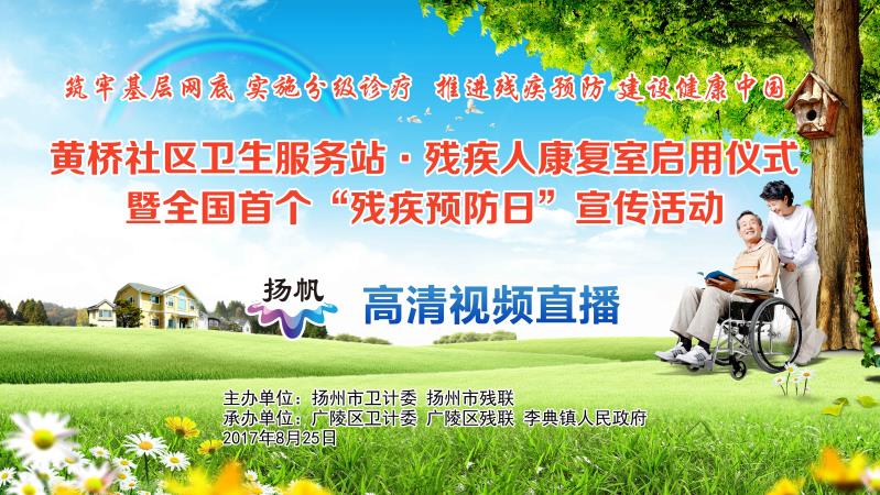 黄桥社区卫生服务站·残疾人康复室启用仪式暨全国首个“残疾预防日”宣传活动于2017年8月25日上午9点举行,届时,扬州广电扬帆手机频道将对本次活动进行全程高清视频直播。