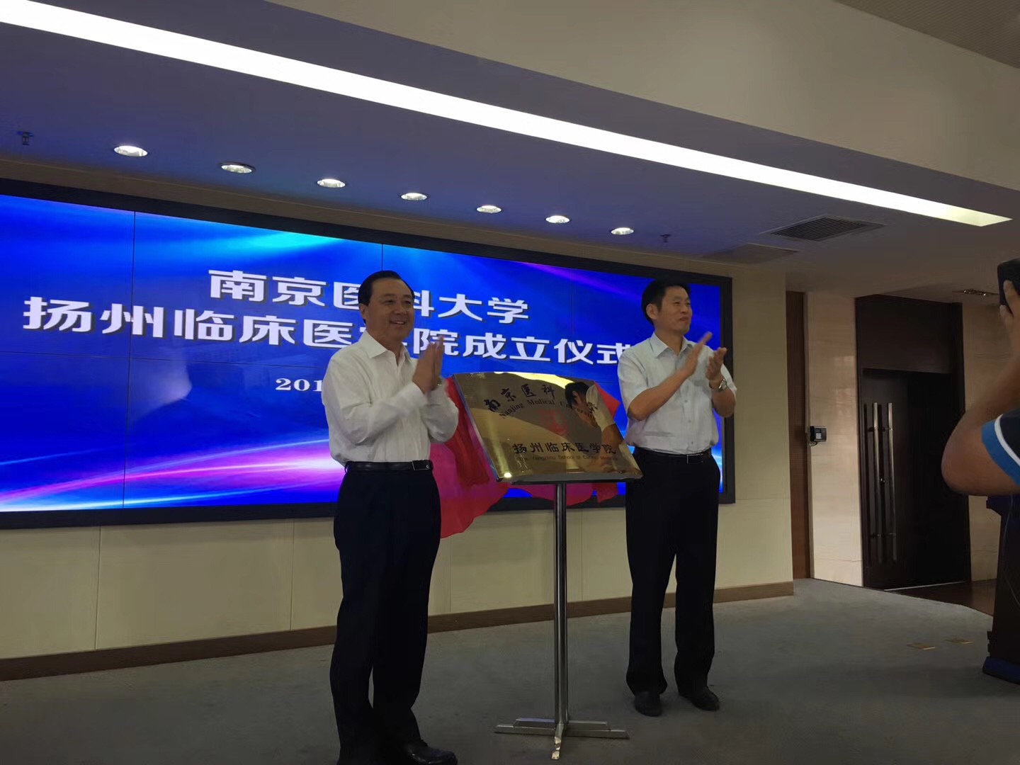南京医科大学王长青书记与扬州市委谢正义书记共同为南京医科大学扬州临床医学院成立揭牌