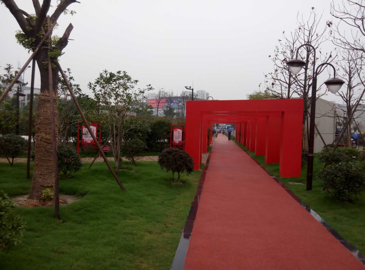 金谷社区公园位于马集镇中心地带,东临育才路、北靠威龙路、南靠金谷路,总占地面积约15亩。游园以花草树木为主,大量种植香樟、广玉兰等乔木树种,配合种植红叶石楠、海桐、毛鹃等灌木,极大地美化了集镇环境。游园同时布置宣传背景墙、小广场、花坛、游步道等作为点缀,在美化环境之余,也为集镇居民提供健身及休憩的场地,极大地提高了周边群众的生活幸福指数。