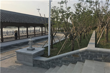 公园总投资约2500万元,项目位于胥浦河东岸,包括迎水坡、堤顶及背水坡;起始点为石碑路大桥,终点为站前路大桥北侧200米,全长2.85公里,绿化面积约20万平方米。依据“生态仪征、江南遗韵”的城市特征,结合项目所在场地周边资源与历史,充分挖掘周边山、林、堤、水、岛等自然资源优势,形成集体游憩、健康慢行、自然生态为一体的滨水绿色景观廊道。该项目于2017年3月开工建设,2017年7月竣工。