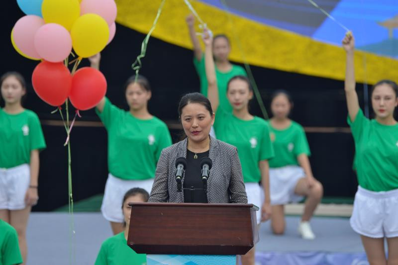 市民代表潘静宣读《迎省运盛会 做文明市民 倡议书》。倡导每个扬州人当好东道主,办好省运会。