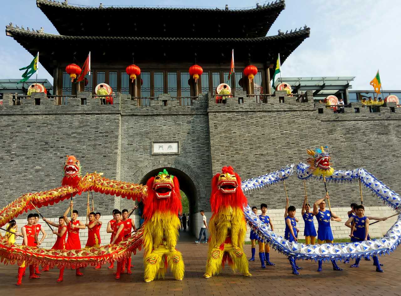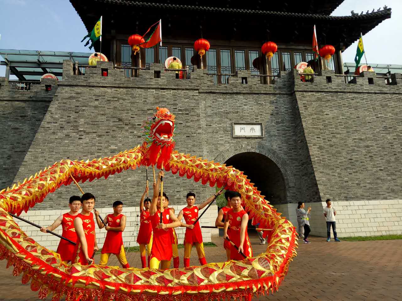舞龙表演。舞龙运动是指舞龙者在龙珠的引导下,手持龙具,随鼓乐伴奏,通过穿,腾,跃,翻,滚,戏,缠,组图造型等动作,充分展示龙的精,气,神,韵等内容的一项传统体育项目。