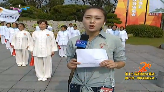 与现场主持人张婷连线。现场采访太极拳负责人,团队中最大七十多岁,最久的打太极十几年了。