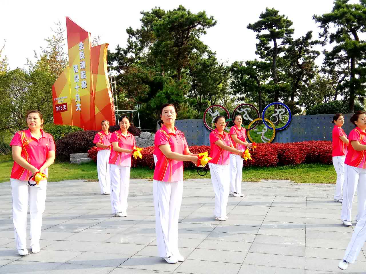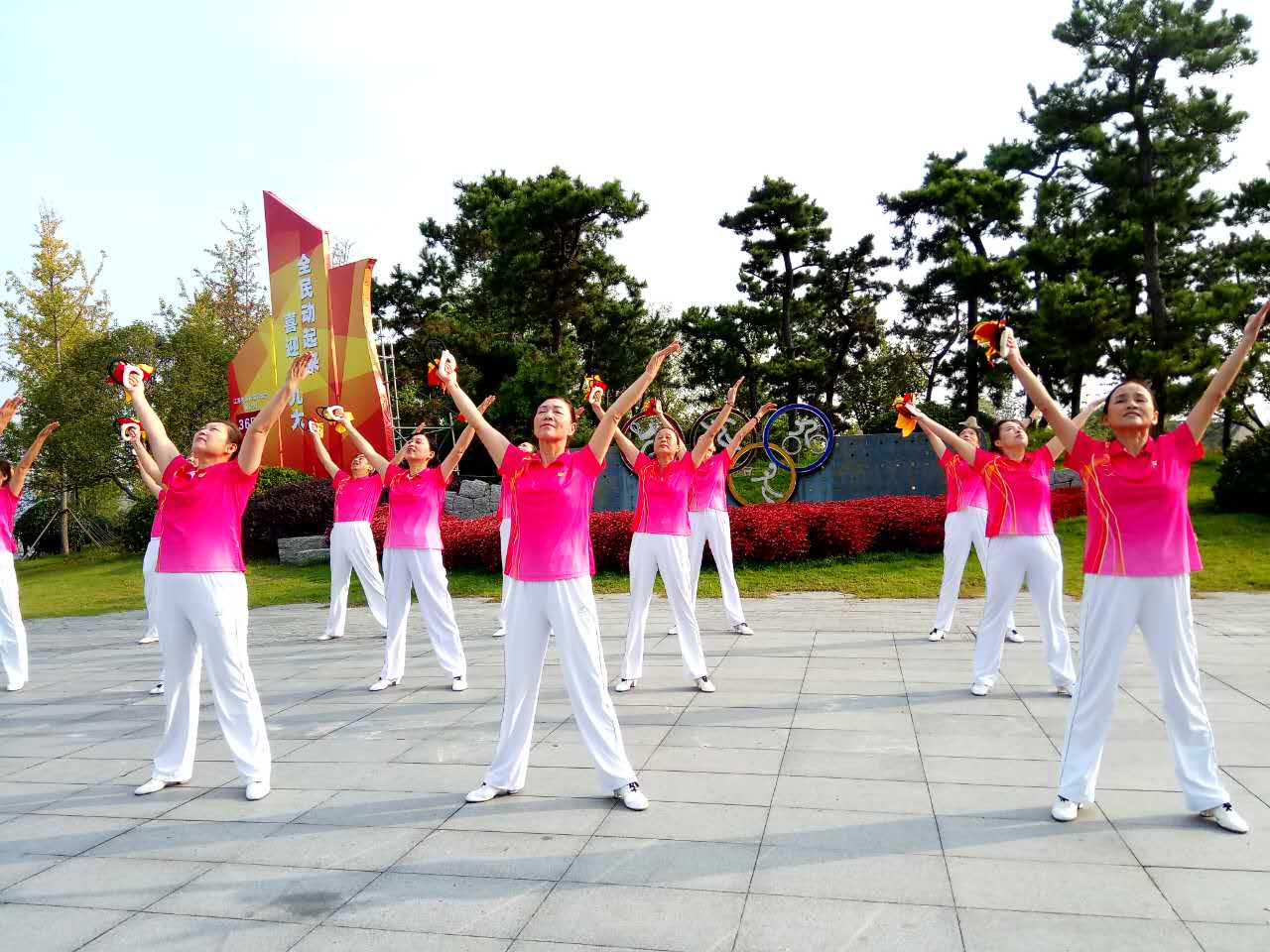 健美操表演。健美操是集体操、舞蹈、音乐、健身、娱乐于一体的体育项目。跳健美操不仅能帮助我们有效的强身健体,而且还有减肥的功效。