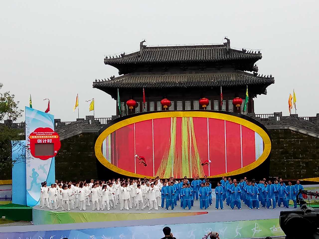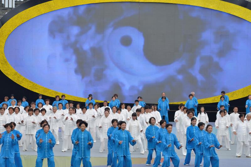 启动仪式开始之前,很多热身运动已经开始,为活动的开始营造了浓浓的运动氛围。太极扇表演。