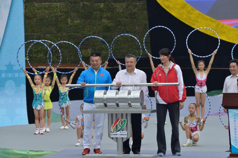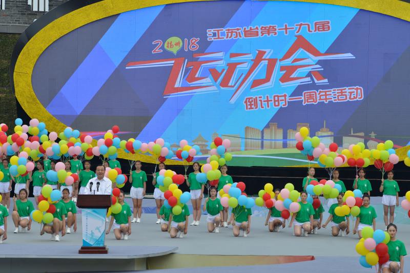 江苏省副省长王江先生与扬州籍著名运动员、国际级运动健将肖爱华女士,扬州市民代表石弘,共同启动江苏省第十九届运动会一周年倒计时。