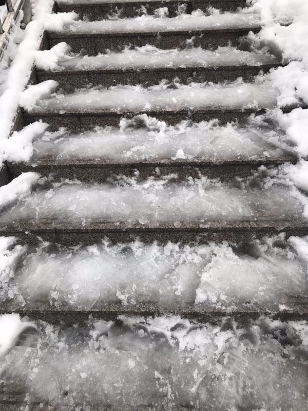 五台山大桥前面机动车道,路面无积雪,行驶通畅。就是上下桥楼梯台阶以及人行通道 有雪覆盖。